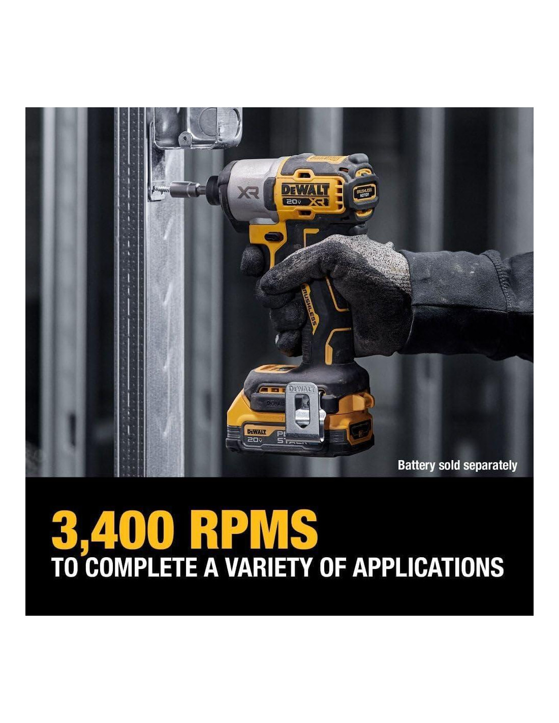 Este destornillador de impacto de 20V MAX XR de 1/4" (6,35 mm) y 3 velocidades es ligero pero potente, con un motor sin escobillas que entrega 1,825 in-lbs (206,84 Nm) de par máximo para atornillar tornillos de gran diámetro. El interruptor de 3 velocidades permite un mayor control y precisión para diversas aplicaciones, ayudando a maximizar la versatilidad en el lugar de trabajo. Mantén la productividad en lugares con poca luz con una luz de trabajo integrada de 3 LED que ayuda a iluminar espacios de trabajo poco iluminados. Este destornillador de impacto inalámbrico viene preparado para Chip (chip se vende por separado) para rastrear la ubicación de la herramienta con la aplicación DEWALT TOOL CONNECT Site Manager. Batería y cargador se venden por separado.