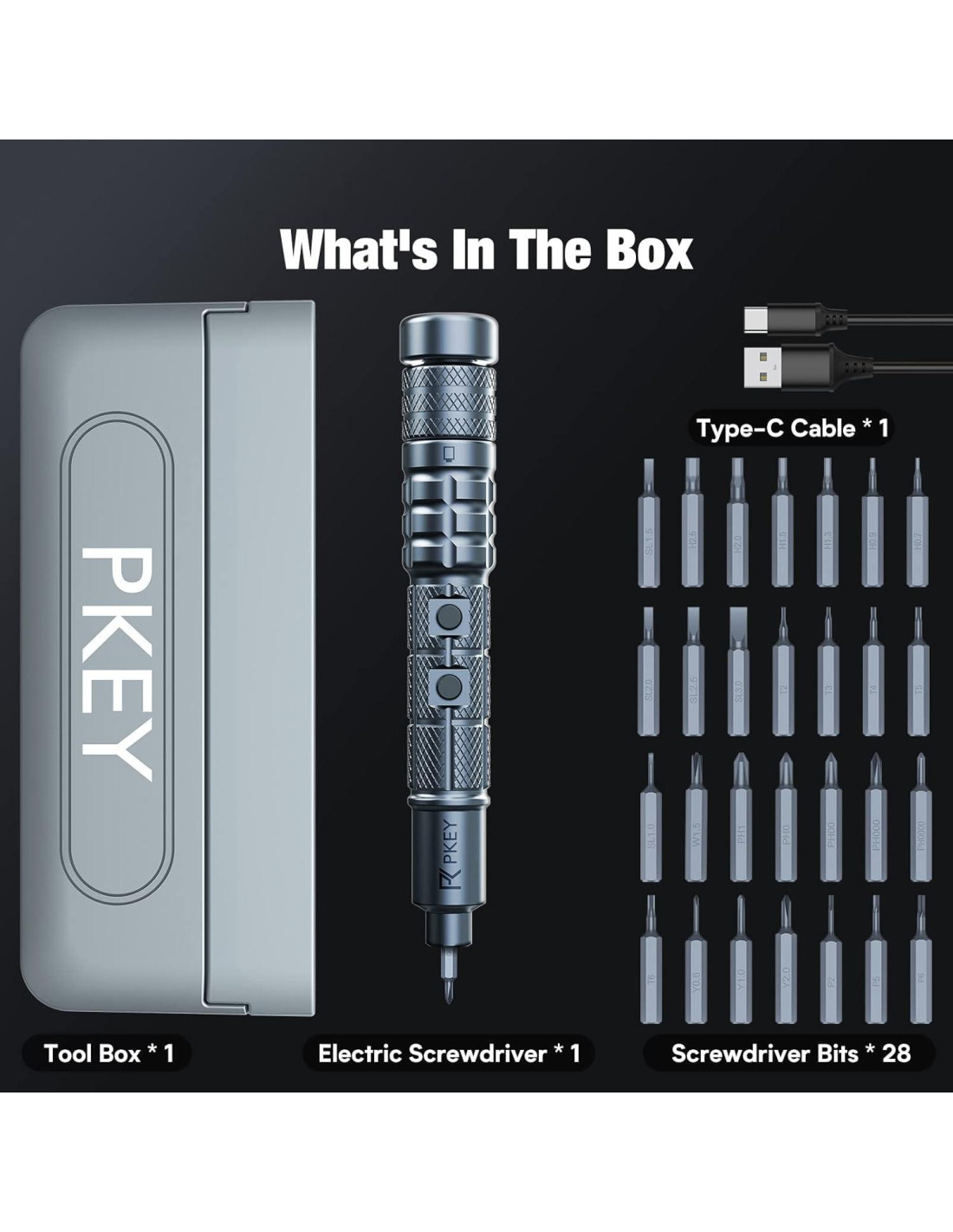 - [Batería de Larga Duración] Equipado con una potente batería de 300mAh, el destornillador eléctrico mini puede funcionar durante 300 minutos con una sola carga, y solo tarda 40 minutos en cargarse completamente, por lo que siempre tendrás la energía que necesitas para realizar el trabajo. Además, el cargador de este destornillador eléctrico mini viene con un puerto de carga Type-C incorporado, lo que lo hace más conveniente para cargar en cualquier momento. Elige el destornillador eléctrico PKEY como tu herramienta multiusos.