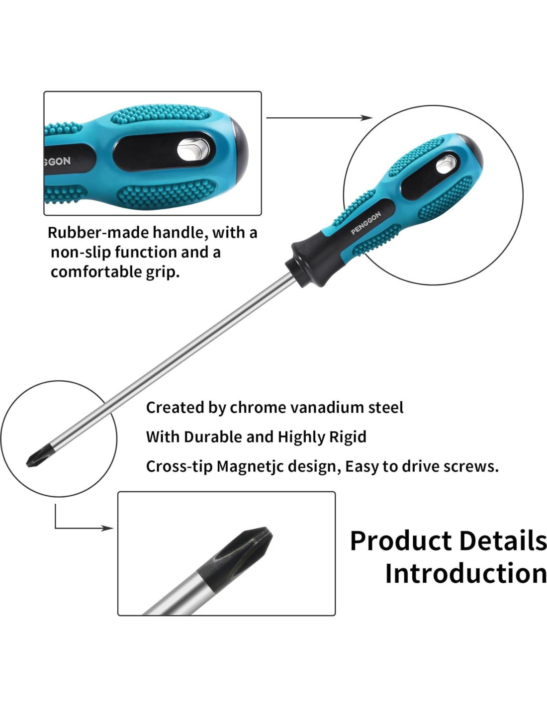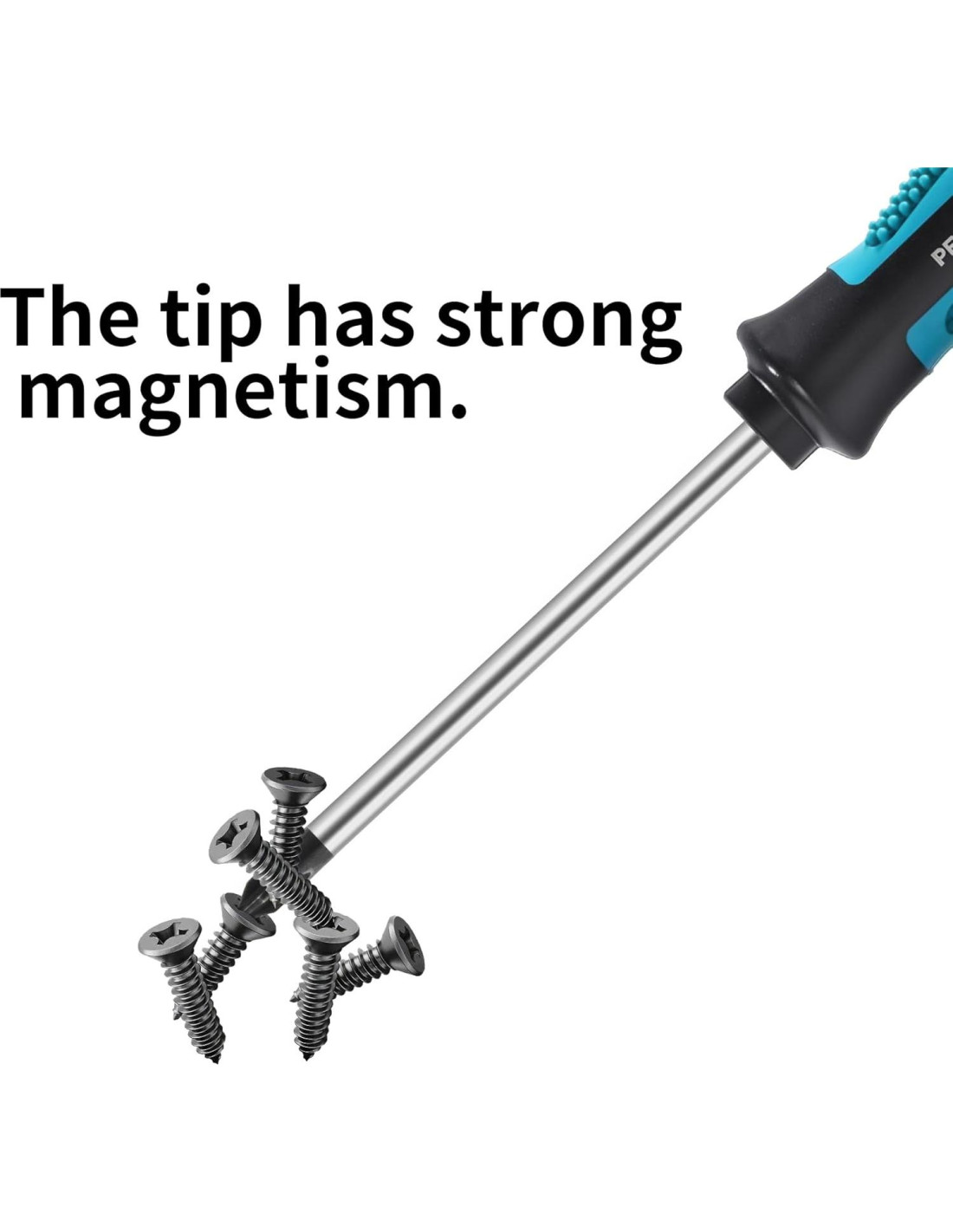 - [Puntas Magnéticas para Sostener Tornillos] El destornillador Phillips con punta magnética lo hace perfecto para el trabajo. Puede sostener tornillos fácilmente en la punta magnética, y puede prevenir efectivamente la caída y pérdida de tornillos.