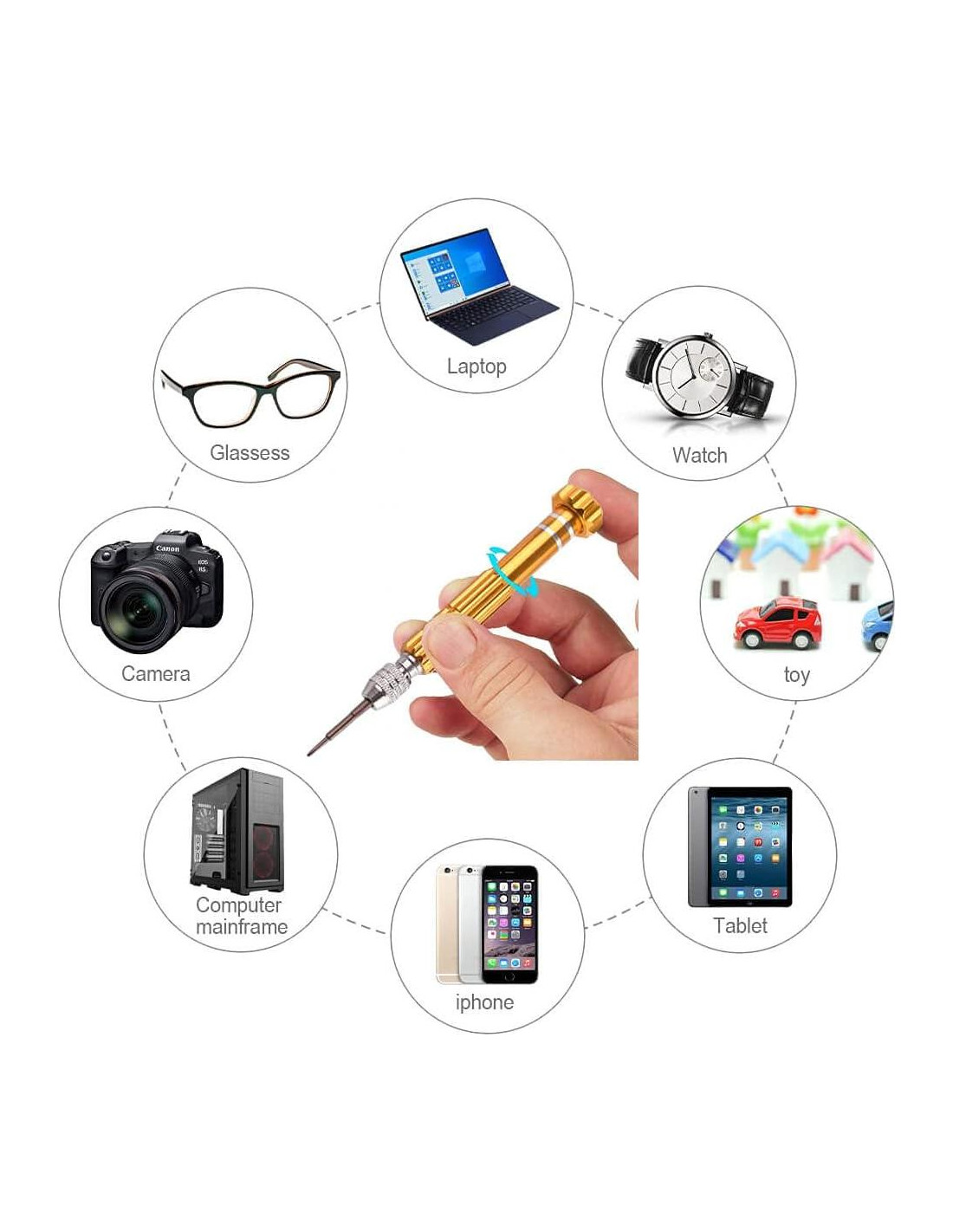 - [Juego de destornilladores multifuncional] Nuestro conjunto te proporciona 8 puntas de destornillador, que es la herramienta esencial en tu caja de herramientas, es adecuada para la reparación de muchos productos de precisión, como iPhones, laptops, electrónicos, joyas, gafas, relojes, MacBook, PS4, etc. Se acepta solicitud de reembolso en caso de no ser compatible.