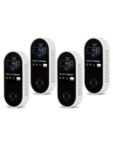 - [Detector de Gas y Monóxido de Carbono 4-en-1] El detector de monóxido de carbono enchufable se utiliza para detectar monóxido de carbono, gas, temperatura y niveles de humedad. El paquete incluye 4 detectores de monóxido de carbono y gas.