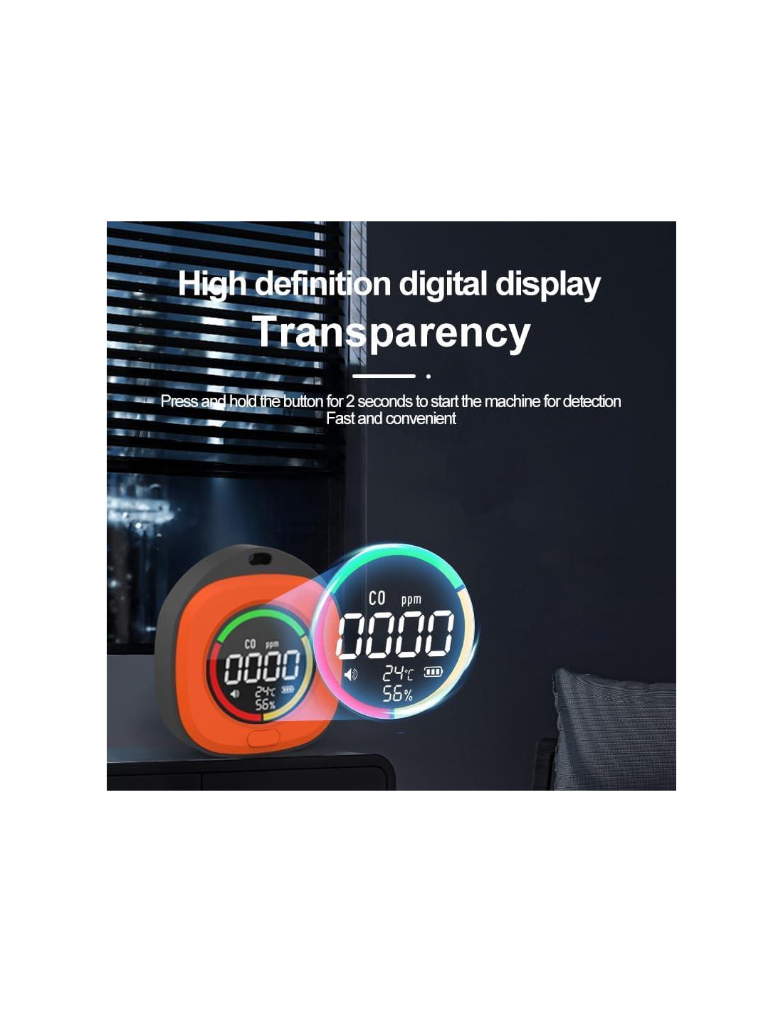 - Sistema de Alarma Visual/Auditiva de 3 Etapas Cuenta con un LED tri-color inteligente (Verde/Safe <50PPM, Amarillo/Advertencia 50-99PPM, Rojo/Peligro >100PPM), zumbador de 85dB con pitidos acelerados, y silencio con un toque para comunicación instantánea de riesgo a todas las edades.