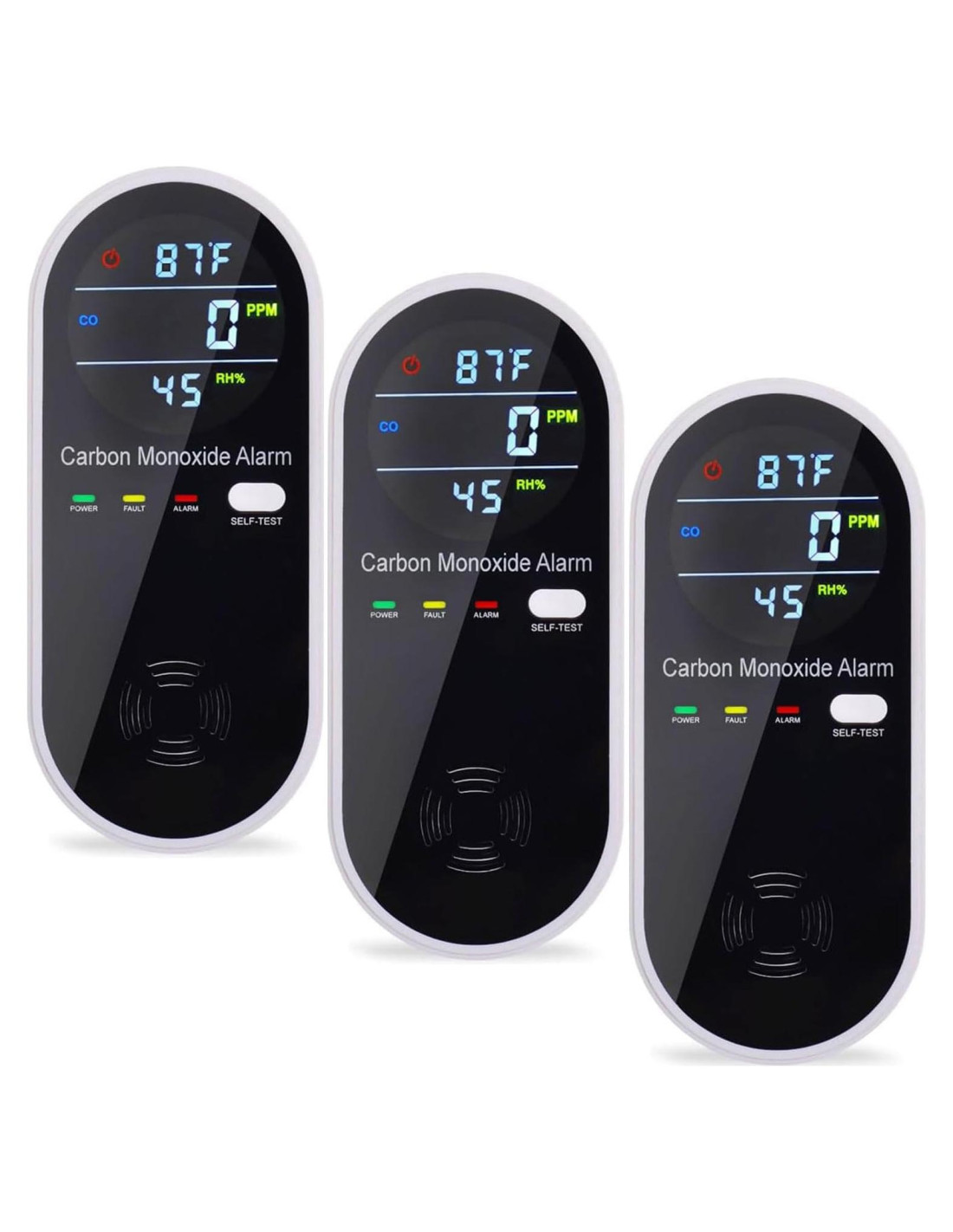 - Detectores de Monóxido de Carbono 3 en 1 - Equipado con 3 indicadores principales de aire de Monóxido de Carbono (0 a 1000PPM), Temperatura (1 a 80 C) y Humedad (0% a 95%RH) para proteger a su familia.