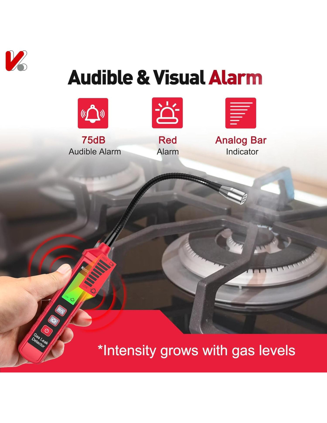 - Diseño de Sonda: El detector de fugas de gas cuenta con una sonda integrada de 8 pulgadas, diseñada para detectar fácilmente áreas de difícil acceso como tuberías. Su diseño compacto y versátil lo convierte en una opción ideal para la detección de fugas tanto en interiores como en exteriores, proporcionando seguridad confiable para cada hogar con gas natural