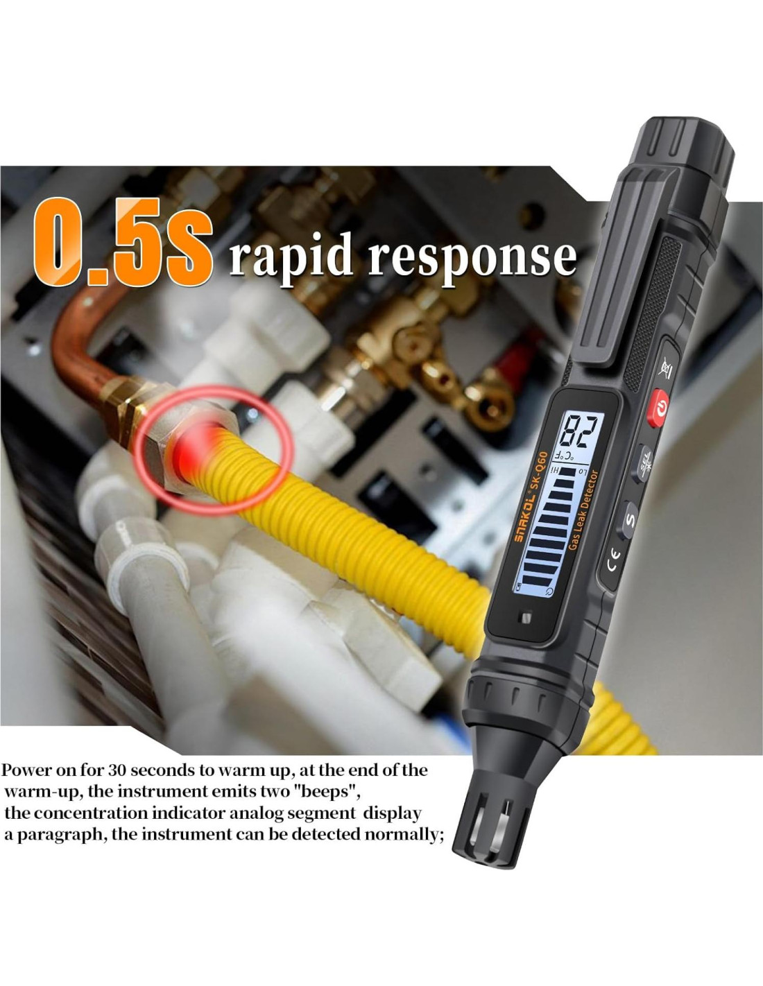 - Detector de Fugas de Gas Combustible - El SK-Q60 de SNAKOL es una herramienta útil. Detecta metano, etano, propano, butano, acetona, gas natural, gas, combustibles gaseosos, gas natural licuado, gas licuado de petróleo, alcohol, disolvente de pintura, etc. Basado en la concentración de gas detectada por el sensor, podemos encontrar la ubicación de la fuga. Puede ayudarnos a eliminar peligros de incendio en nuestra vida hogareña y podría ahorrarnos costos de gas.