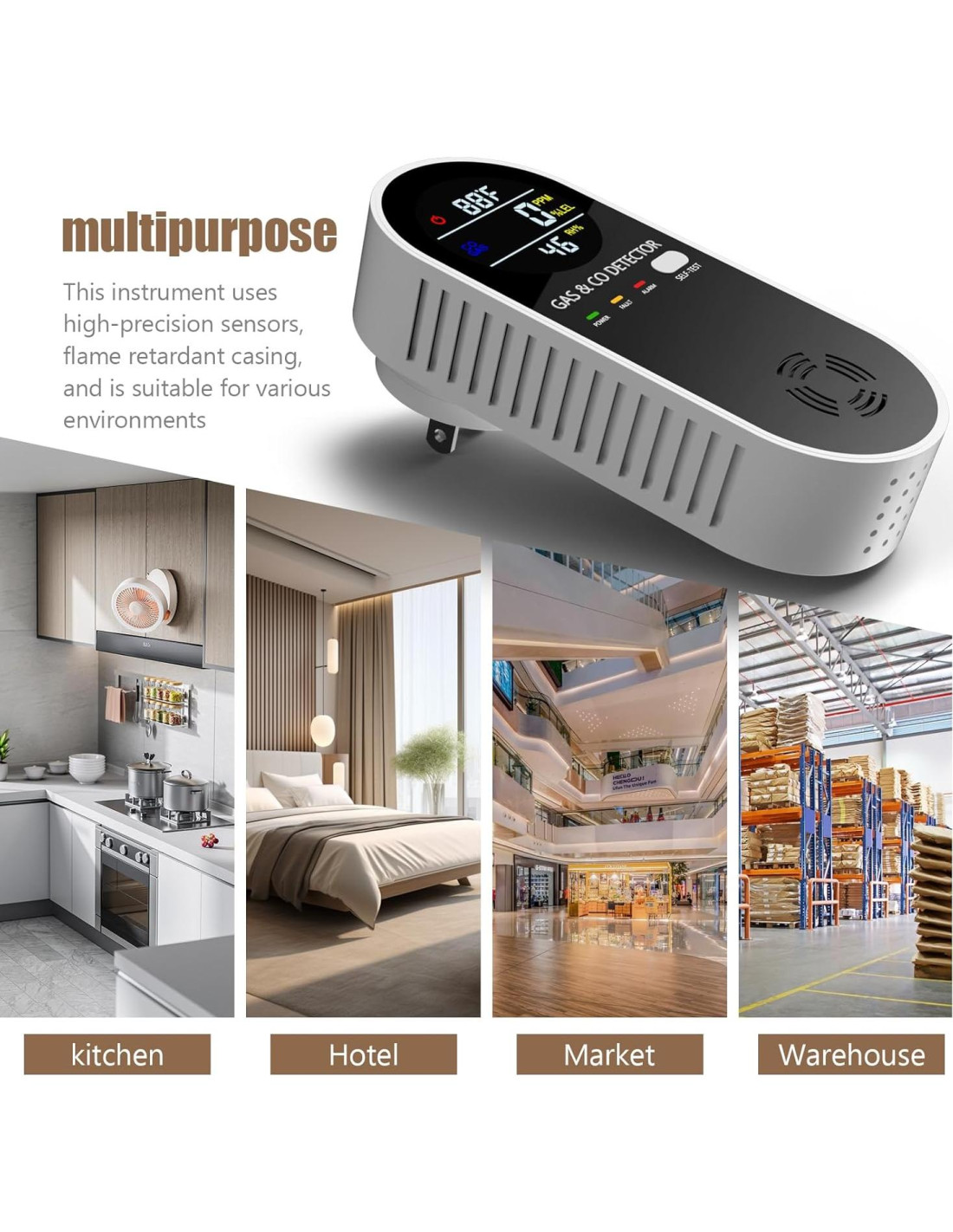 - [4 en 1 Detectores de Gas CO y propano] Este nuevo detector combinado 4 en 1 de CO y propano integra sensores de monóxido de carbono, gas combustible, temperatura y humedad, detectando en tiempo real la seguridad del gas ambiental para nosotros.