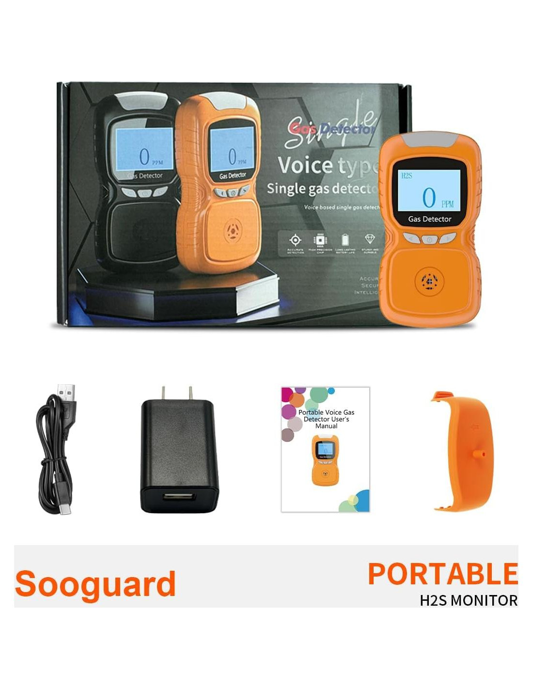 - Componentes incluidos: Instrucciones de operación, Estuche de transporte bellamente presentado, Monitor de H2S Portátil Sooguard, Cable USB
