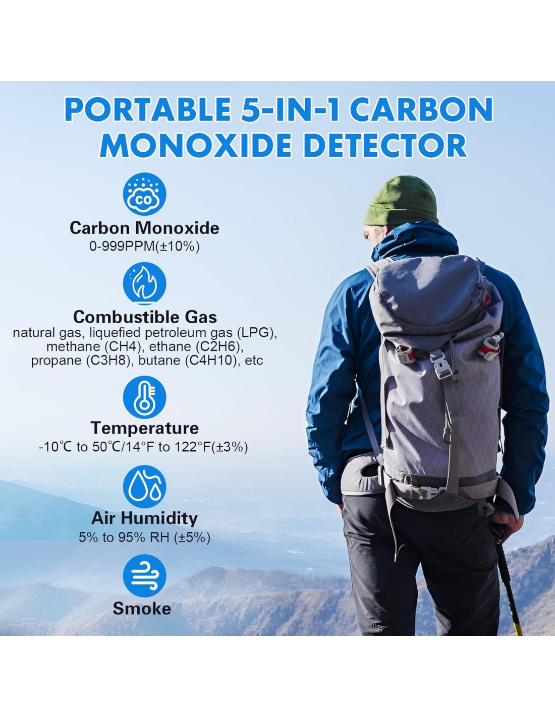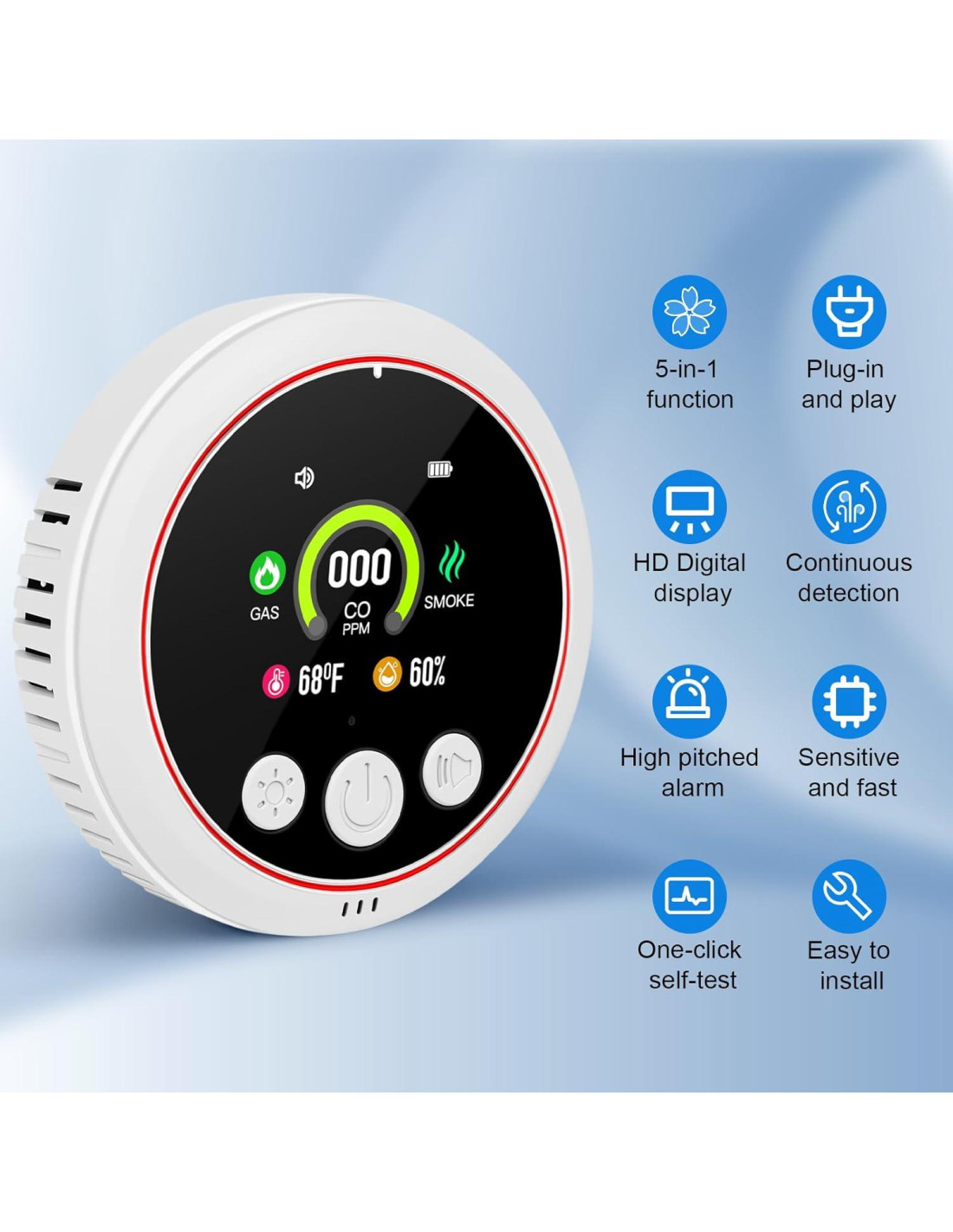 - [5-en-1 Detector de Monóxido de Carbono, Humo y Gas Natural Mejorado] Este detector de monóxido de carbono y gas propano Chyuuie 5-en-1 integra monóxido de carbono, gas combustible, humo, temperatura y sensores de humedad, que es fácil de transportar y detecta gases en el entorno en tiempo real para garantizar nuestra seguridad. La batería recargable de 1000 mAh incorporada asegura que esta alarma de humo y monóxido de carbono continúe funcionando en caso de un corte de energía.