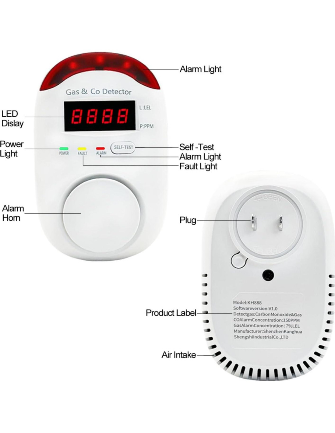 - Detector de Gas y Monóxido de Carbono Enchufable Este detector de gas 2 en 1 utiliza un sensor de combustión catalítica y un sensor electroquímico para una detección sensible y alta precisión, convirtiéndolo en uno de los miembros más importantes de su hogar de protección.