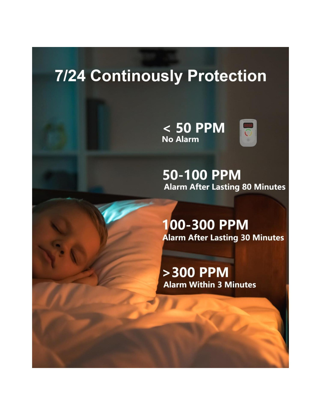 - Uso Versátil: Este detector de monóxido de carbono es perfecto para varios entornos, como cocinas, dormitorios, baños, hoteles o durante actividades al aire libre como barbacoas. También es ideal para espacios cerrados como garajes.