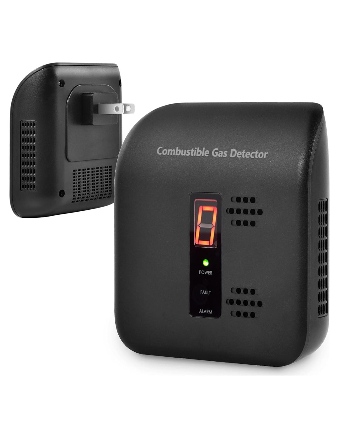 Detector de Fugas de Gas Natural Conectable para el Hogar - Alarma Sensible para Metano, Propano, Butano y GLP en Cocina, Caravana Negro