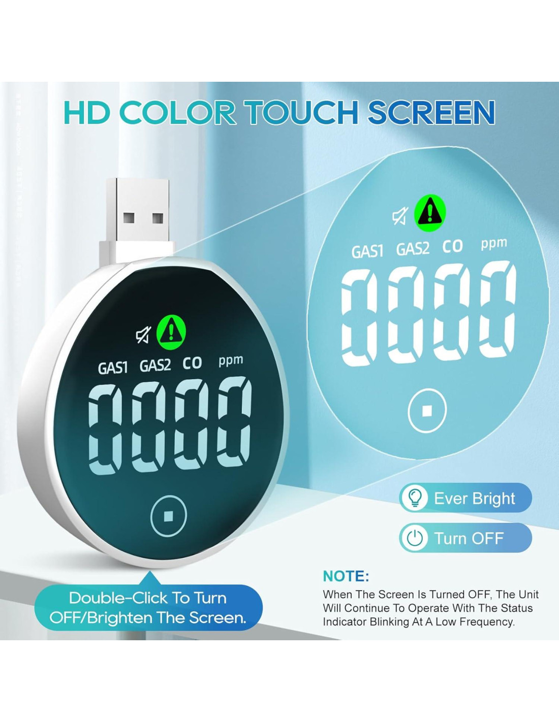 - [ALIMENTACIÓN USB INNOVADORA] Este monitor de monóxido de carbono y gas está equipado con un puerto USB, que puede ser alimentado por una variedad de dispositivos. Como enchufe USB, computadora, batería móvil, energía de emergencia, etc. También equipado con adaptador de alimentación USB y adaptador hembra de Type-C a USB, que puede realizar el uso de enchufes estándar, teléfonos celulares y otros dispositivos para alimentar el monitor de CO y gas.