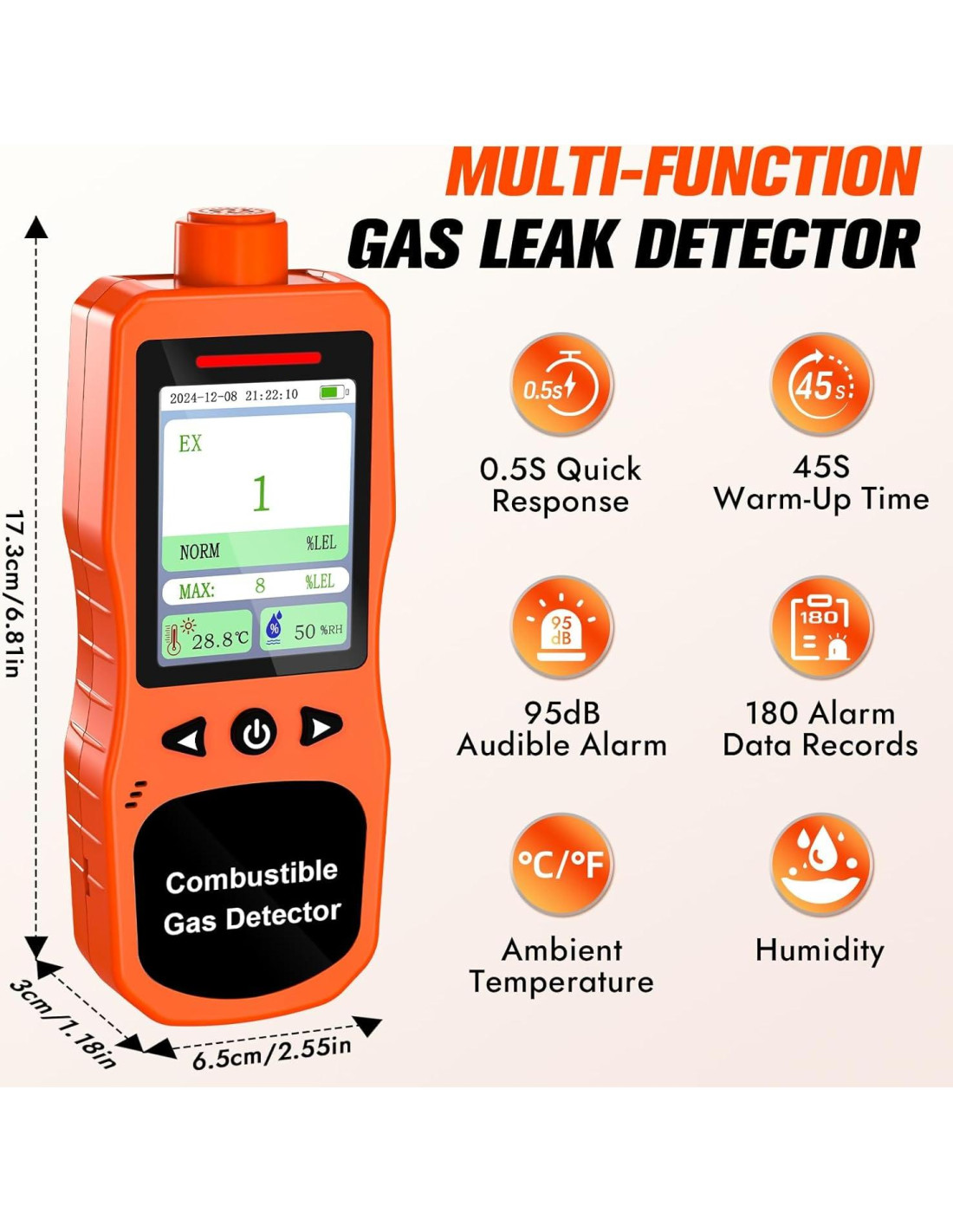 - Detector de Gas Combustible de Mano: Detectores de gas calibrados de fábrica, solo enciende para detectar gas natural al instante. Este detector de gas propano tiene una vida útil del sensor de 5 años, es un detector de gas portátil imprescindible para gas natural en el hogar, casas rodantes, calentadores de agua, tuberías de gas, minas de carbón y seguridad industrial. (¡Por favor, permite 45 segundos para el calentamiento antes de la operación!)