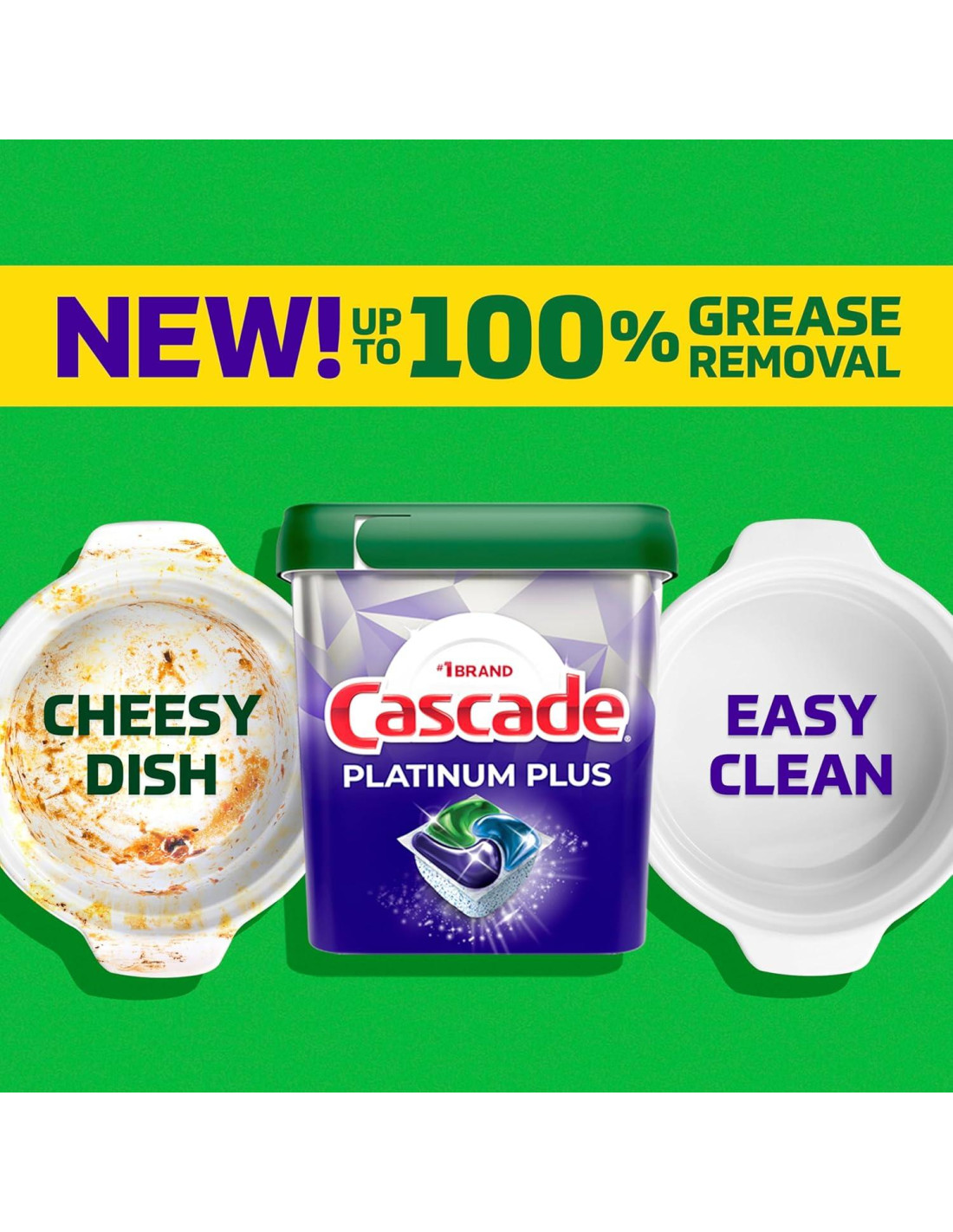 - Solo Cascade Platinum Plus contiene 2X* el poder de combate de grasa de Dawn y 2X* el poder de fregado para eliminar alimentos secos *Ingredientes de limpieza en comparación con Cascade Complete ActionPacs