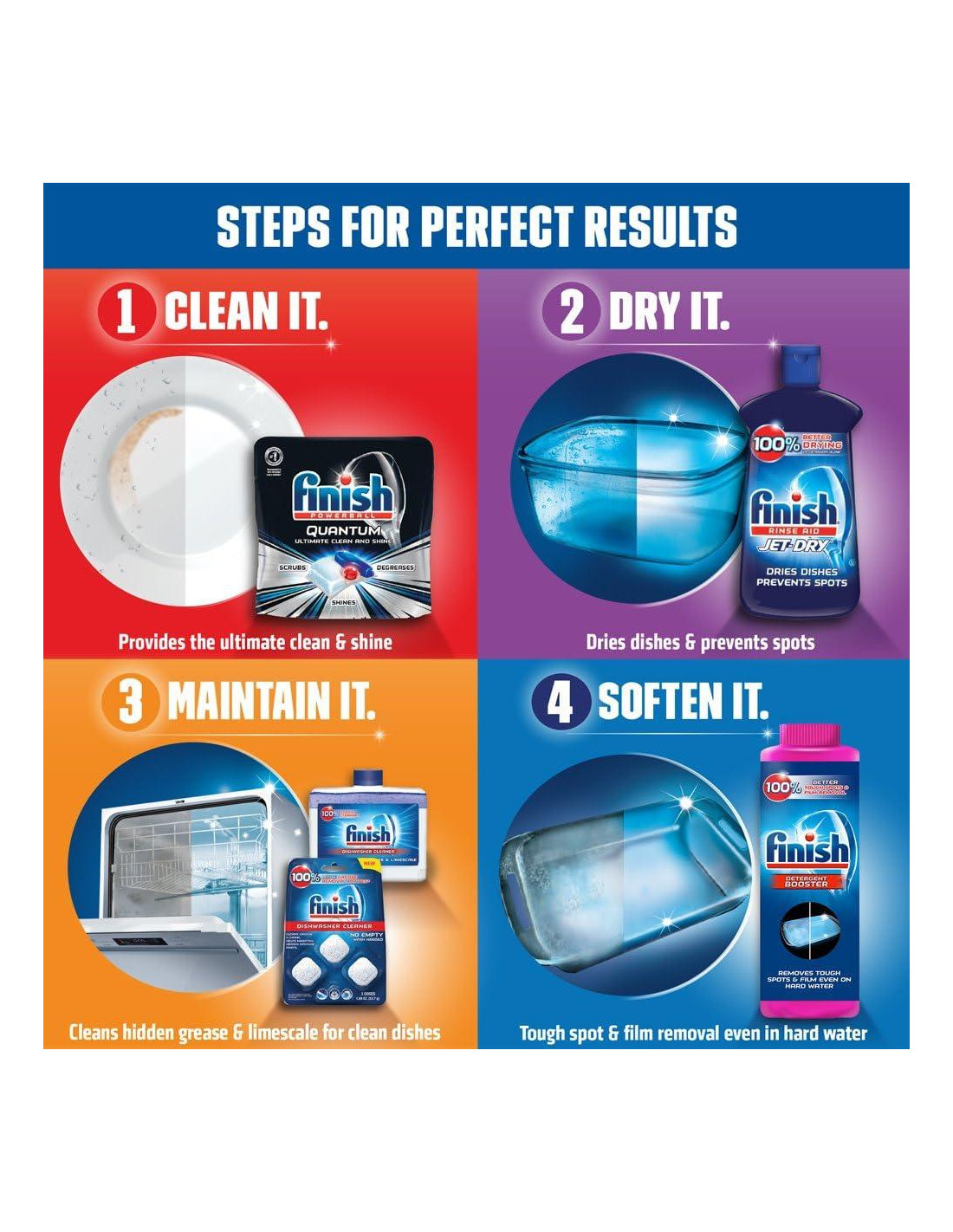 Buscando un detergente en gel para lavavajillas potente. Nuestro gel finish trabaja duro para brindarte un poder de limpieza profunda más un increíble brillo para eliminar manchas difíciles de alimentos como café y té. Este gel potente trabaja rápido para dejar tus platos relucientes.