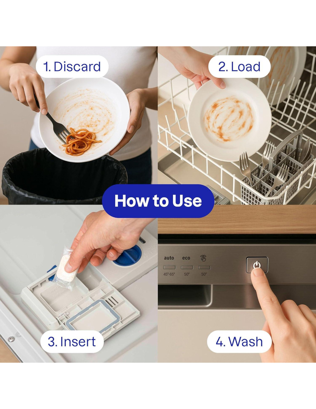 - FÓRMULA A BASE DE PLANTAS: La fórmula de estas cápsulas para lavavajillas es biodegradable, y libre de cloro y otros productos químicos agresivos.