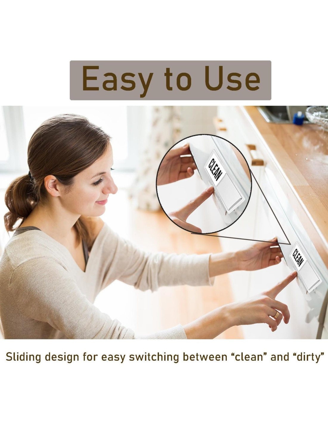 - DISEÑO DESLIZANTE AMIGABLE: Equipado con un mecanismo deslizante y protuberancias en ambos lados, esta señal permite cambios de estado suaves y rápidos. El fondo negro y blanco claro facilita la distinción entre platos limpios y sucios.