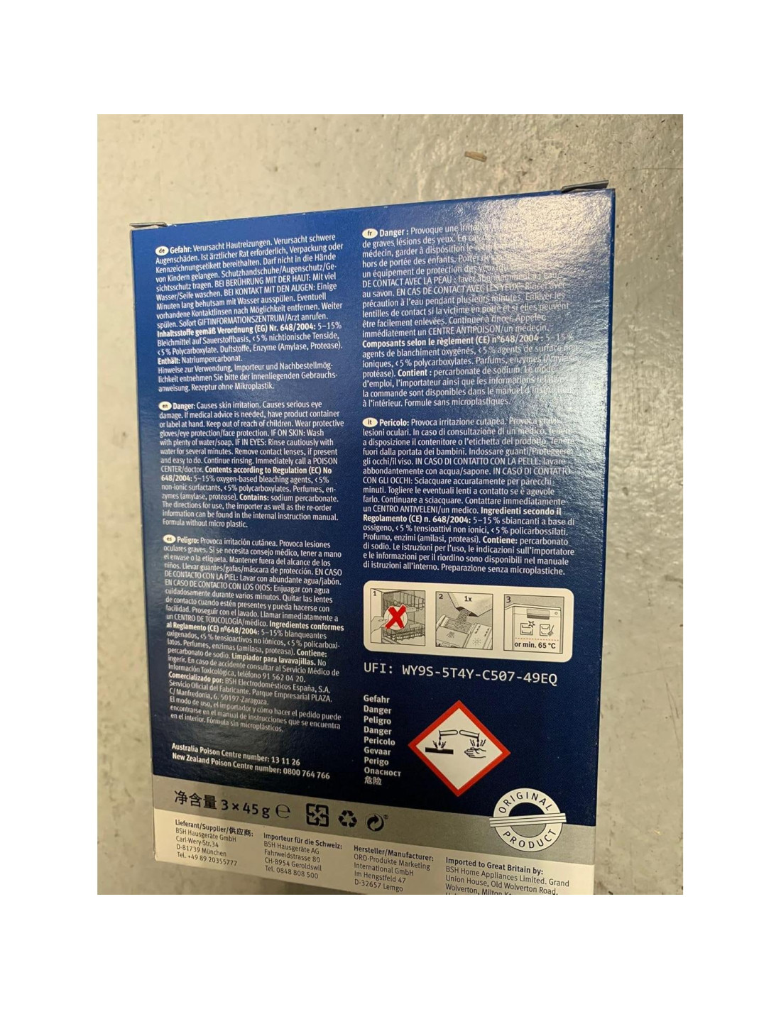 - El Bosch 00312193 elimina residuos de grasa, almidón y proteínas de los interiores de los lavavajillas. Contiene 3 paquetes - usa 1 paquete para cada limpieza. Utiliza cada pocos meses para ayudar a mantener tu lavavajillas.
