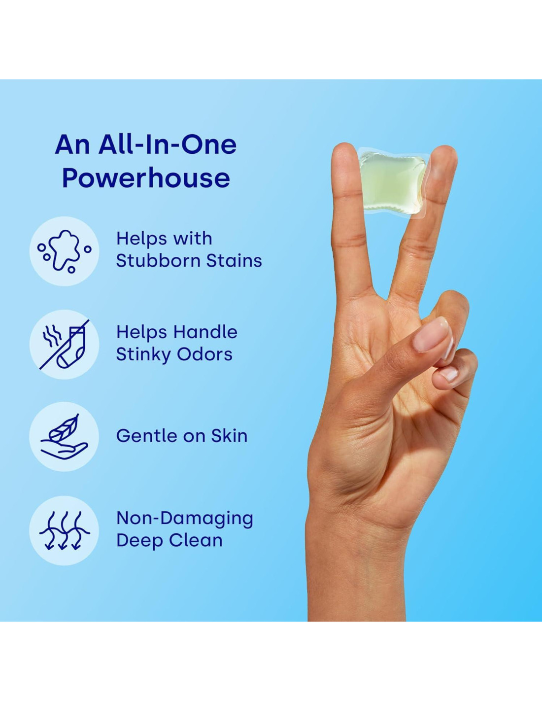 - ELIMINACIÓN DE OLORES DIRIGIDA Y REMOCIÓN PODEROSA DE MANCHAS: Nuestros pods de detergente están elaborados con cinco enzimas especializadas para combatir manchas difíciles y tecnología innovadora de mal olor para eliminar olores desagradables. Ideal para telas de uso diario como algodón, ropa deportiva y poliéster. Eleva tu experiencia de lavandería con nuestras fragancias cuidadosamente seleccionadas, libres de perfumes abrumadores.