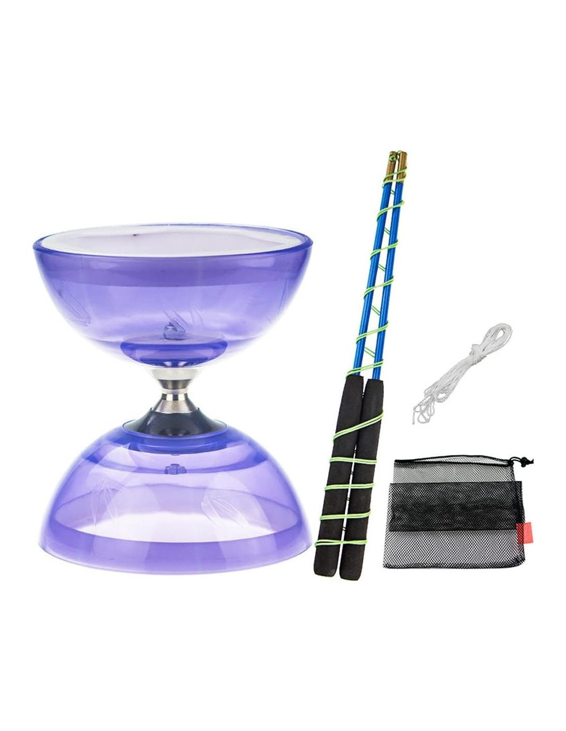 Especificación: Nombre del Producto: Diábolo Triple Rodamiento Material del Producto: Caucho Suave Color del Producto: Azul, Púrpura, Rojo, Verde Tamaño del Producto: 14.5*13.5 cm (5.71*5.31 pulgadas) Paquete incluido: 1 x Diábolo 1 x Cuerda de Repuesto de 10m 2 x Palo Profesional 1 x Bolsa de Red