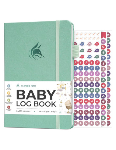 - FORMATO A5 DURADERO Y COMPACTO - Este diario de cuidado para recién nacidos dura 3 meses y mide 14.7 por 21 cm (5.8 por 8.3 pulgadas). El diario de seguimiento tiene una cubierta de eco-cuero, papel grueso de 120gsm, banda elástica, lazo para bolígrafo, encuadernación plana, pegatinas y guía del usuario.