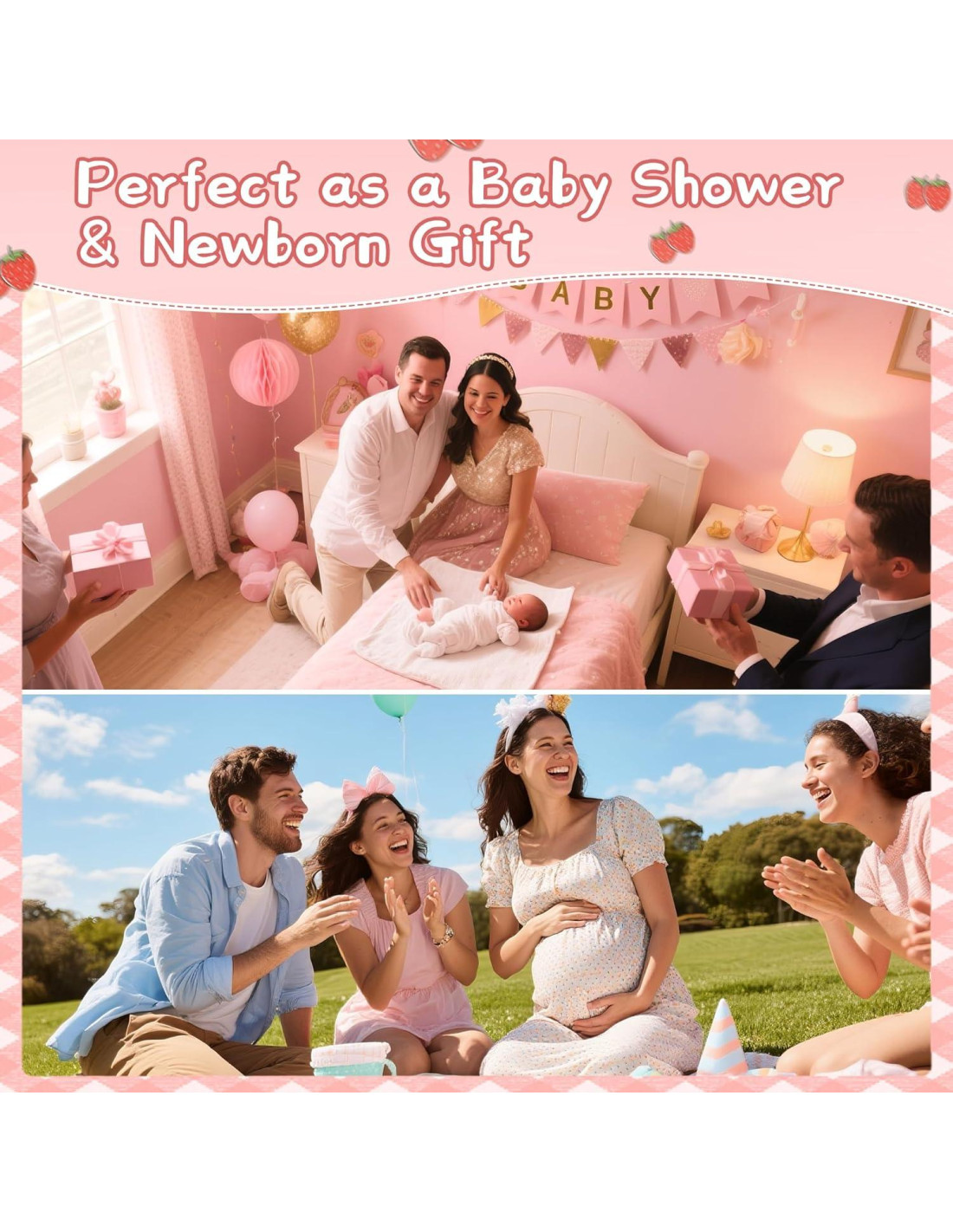 - Un Dulce Regalo para Nuevos Padres: Empacado en una encantadora bolsa de tela con patrón de fresa, este conjunto de recuerdos es perfecto para baby showers o padres primerizos. Un encantador recuerdo de cartel de recién nacido 'hola mundo' y un regalo para bebés reflexivo, todo en uno.