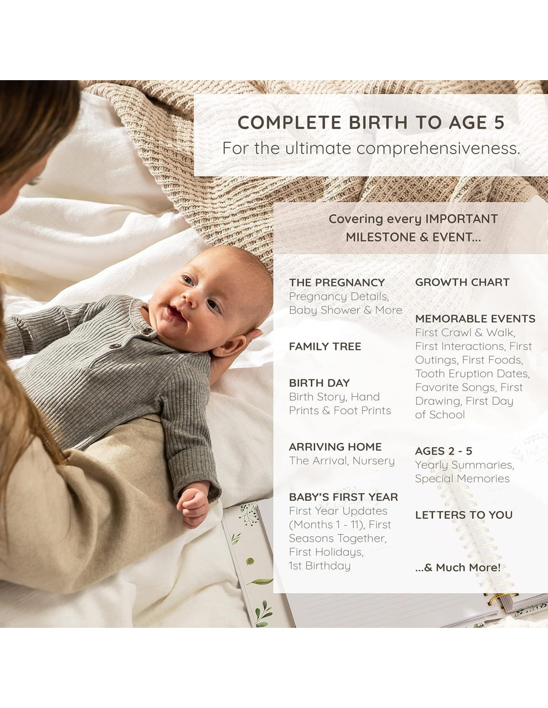 - Captura TODO EL VIAJE DEL BEBÉ desde el NACIMIENTO HASTA LOS 5 AÑOS con nuestro LIBRO DE RECUERDOS para bebé de género neutral de 120 PÁGINAS, CUBRIENDO CADA HITO IMPORTANTE, desde el nacimiento hasta el primer año del bebé hasta los 5 años, este LIBRO DE HITOS FÁCIL DE COMPLETAR NO TE ABRUMARÁ; dedica SOLO 5 MINUTOS A LA SEMANA para registrar cada gran momento; o usa tu álbum de recuerdos diario y añade aún más detalles; con AMPLIO ESPACIO PARA FOTOS Y ESPACIO "EN BLANCO" nuestro libro de registro del bebé tiene TODO LO QUE NECESITAS para contar la historia de tu bebé