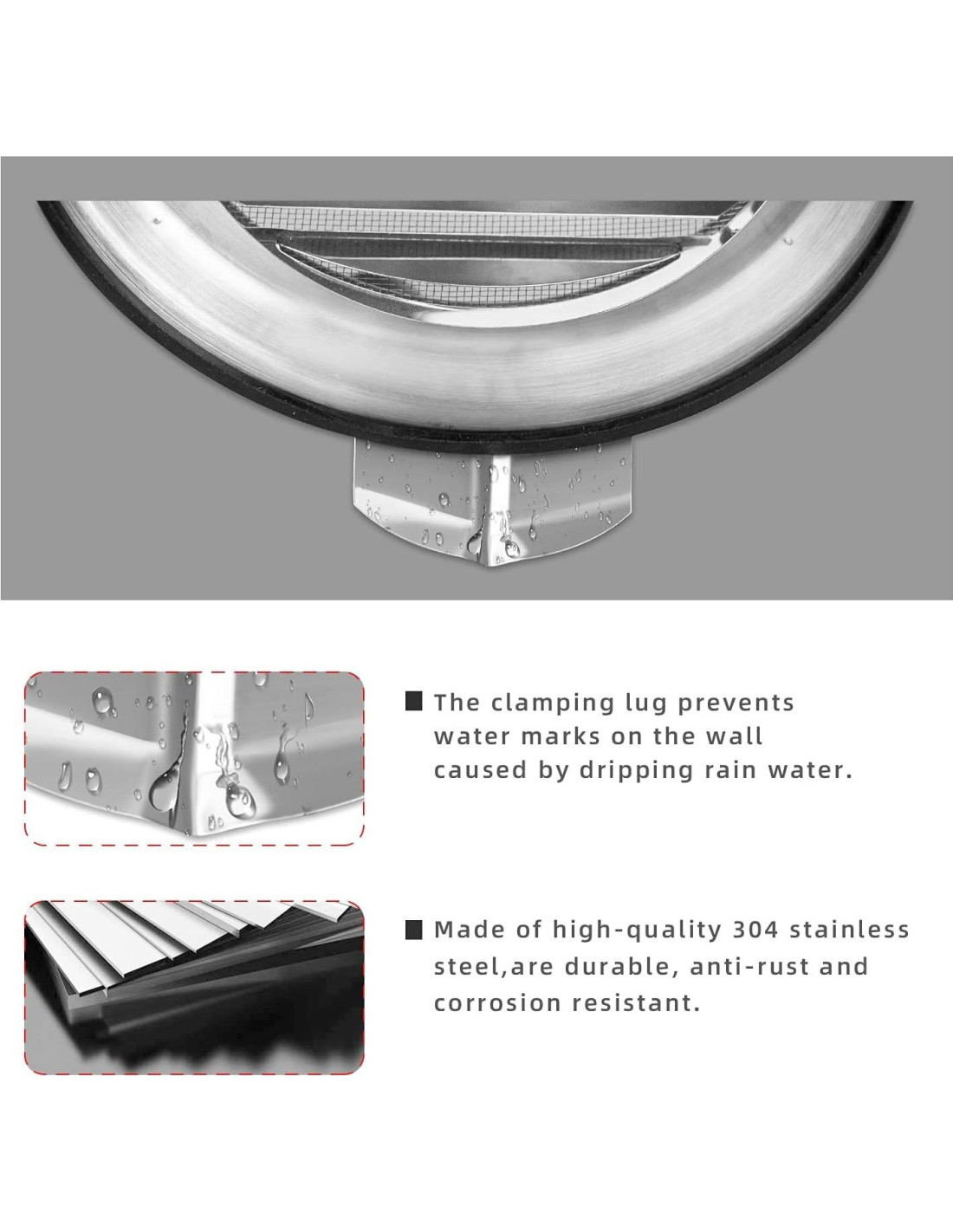 - IDEAL PARA USO EN HOGAR La lengüeta de sujeción previene marcas de agua en la pared causadas por la lluvia. La ventilación también protege contra aves, ratas y lluvia.