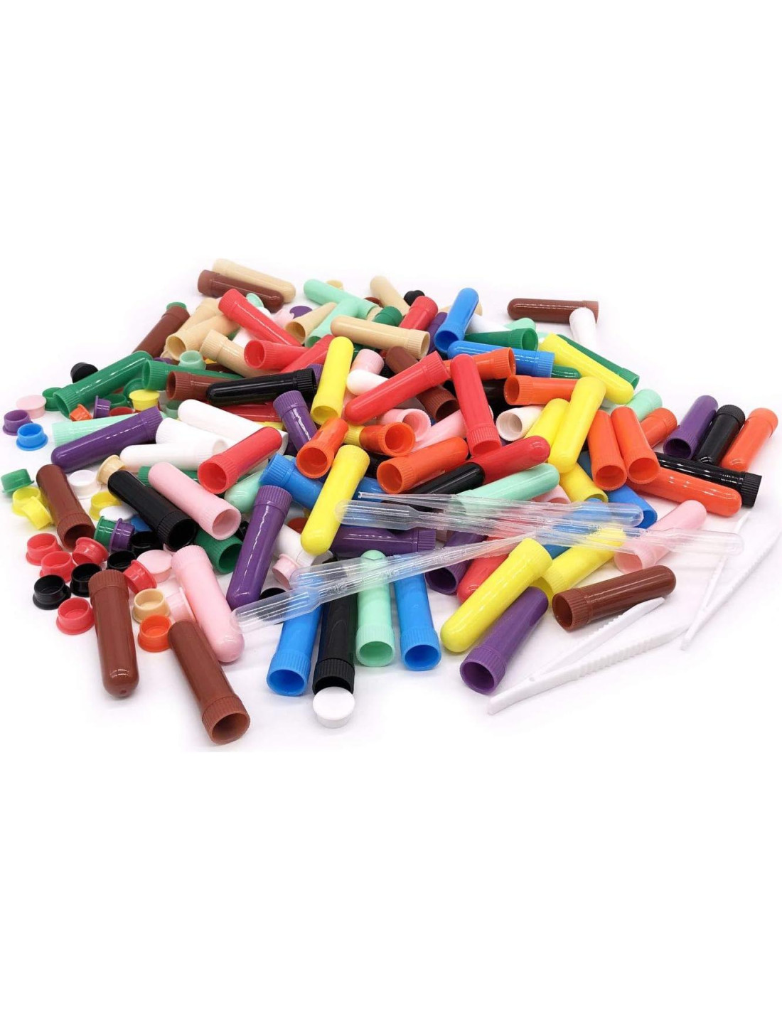 - 120 PCS Tubos Inhaladores Nasales en Blanco de Aromaterapia con Aceite Esencial (Incluye 130 Mechas Sin Aroma + 5 Gotero de Polietileno + 2 Pinzas de Plástico)