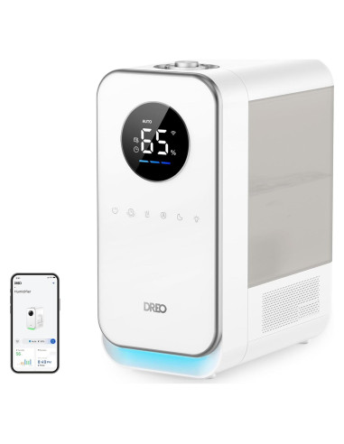 - Control por Voz y App: Este humidificador inteligente te brinda la comodidad adicional que necesitas para las plantas cuando tus manos están ocupadas o lejos de casa. Ajusta fácilmente la configuración de la niebla, temporizadores, iluminación ambiental usando Alexa, Google Assistant, o desde cualquier lugar con la app Dreo.