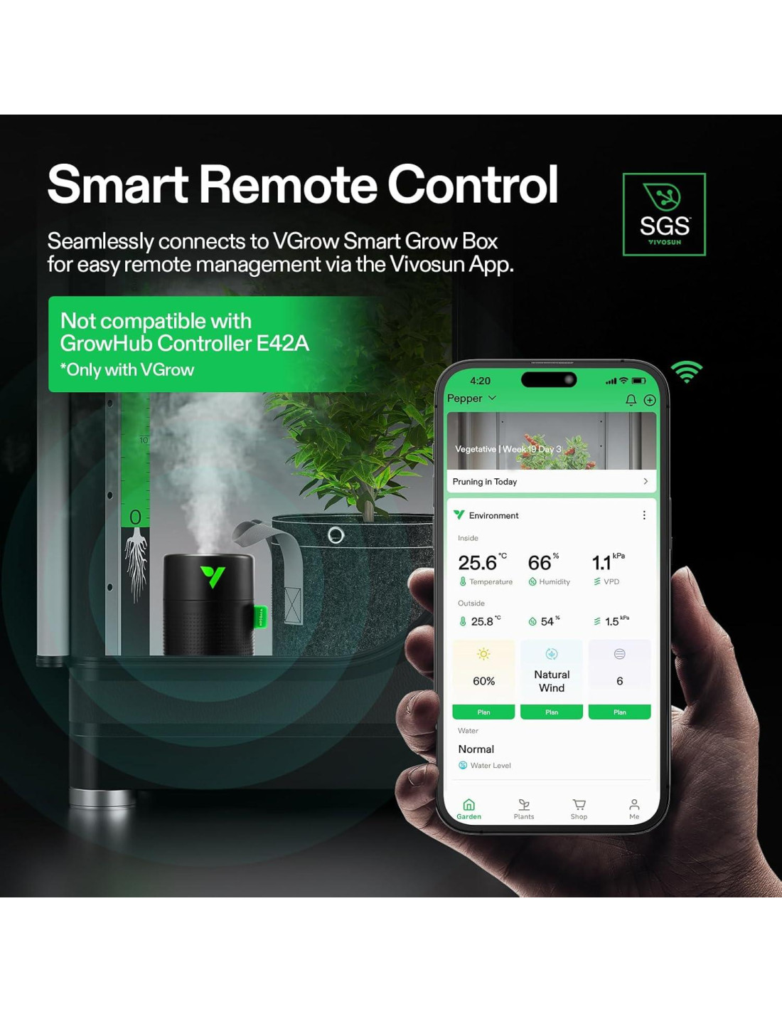 - Control Inteligente con VGrow: Compatible con la Caja de Cultivo Inteligente VGrow de Vivosun y el Sistema de Cultivo Inteligente (SGS) [No compatible con el Controlador GrowHub E42A] ; Controlable de forma remota a través de la aplicación Vivosun [solo] cuando está conectado a VGrow