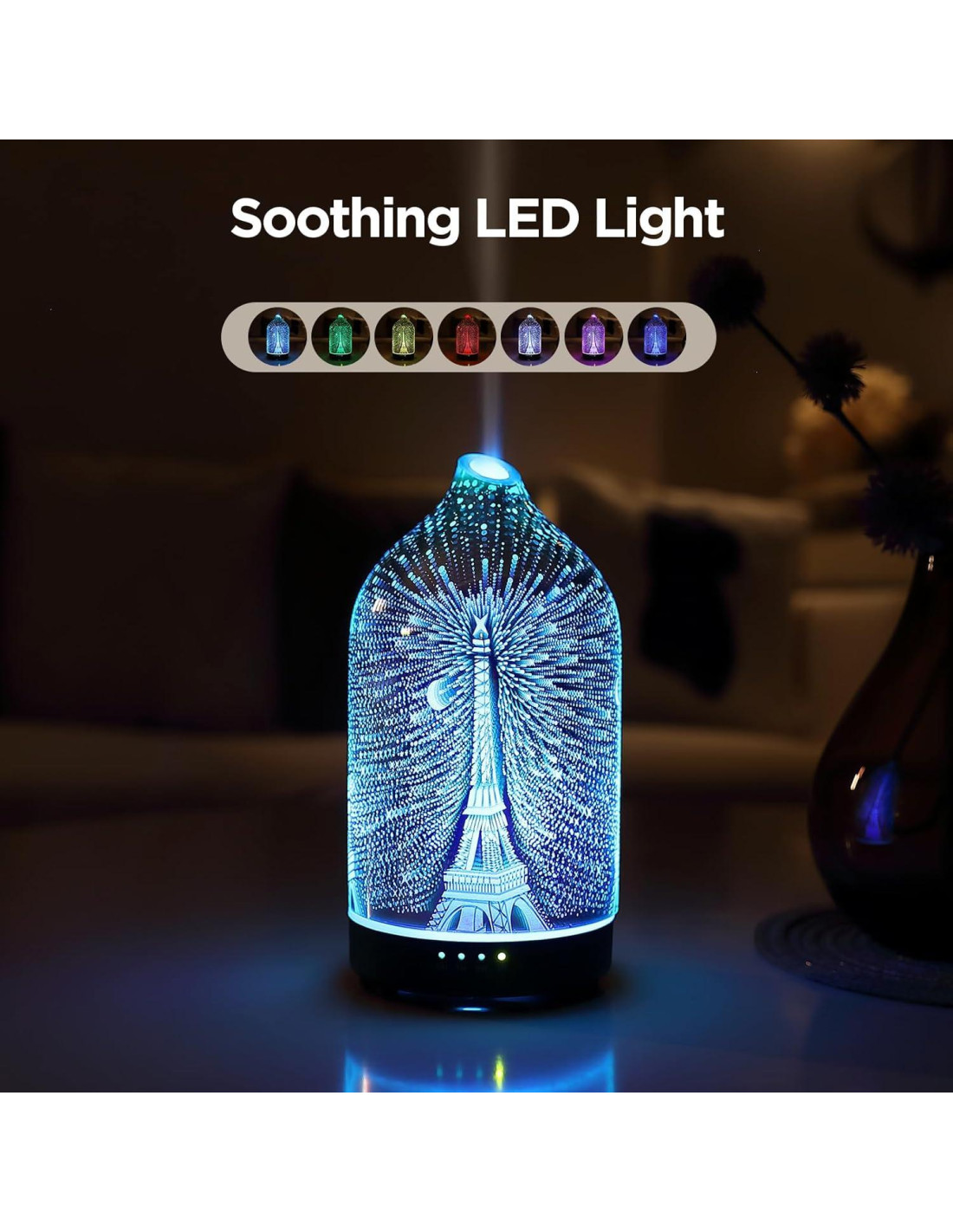 - Efecto de iluminación 3D único: Capacidad de hasta 160ml de agua, el humidificador es un compañero perfecto de aromaterapia en su vida. Ajuste el color de luz que prefiera (fijo/cambiar color) o configure el modo brillante/dim. El Humidificador Aroma 3D Desire le da la opción de agregar de 3 a 6 gotas de su aceite esencial favorito al tanque de agua del difusor de aceite que rociará suavemente una hermosa niebla aromática en el aire, permitiéndole beneficiarse de las maravillas de los aceites esenciales naturales.