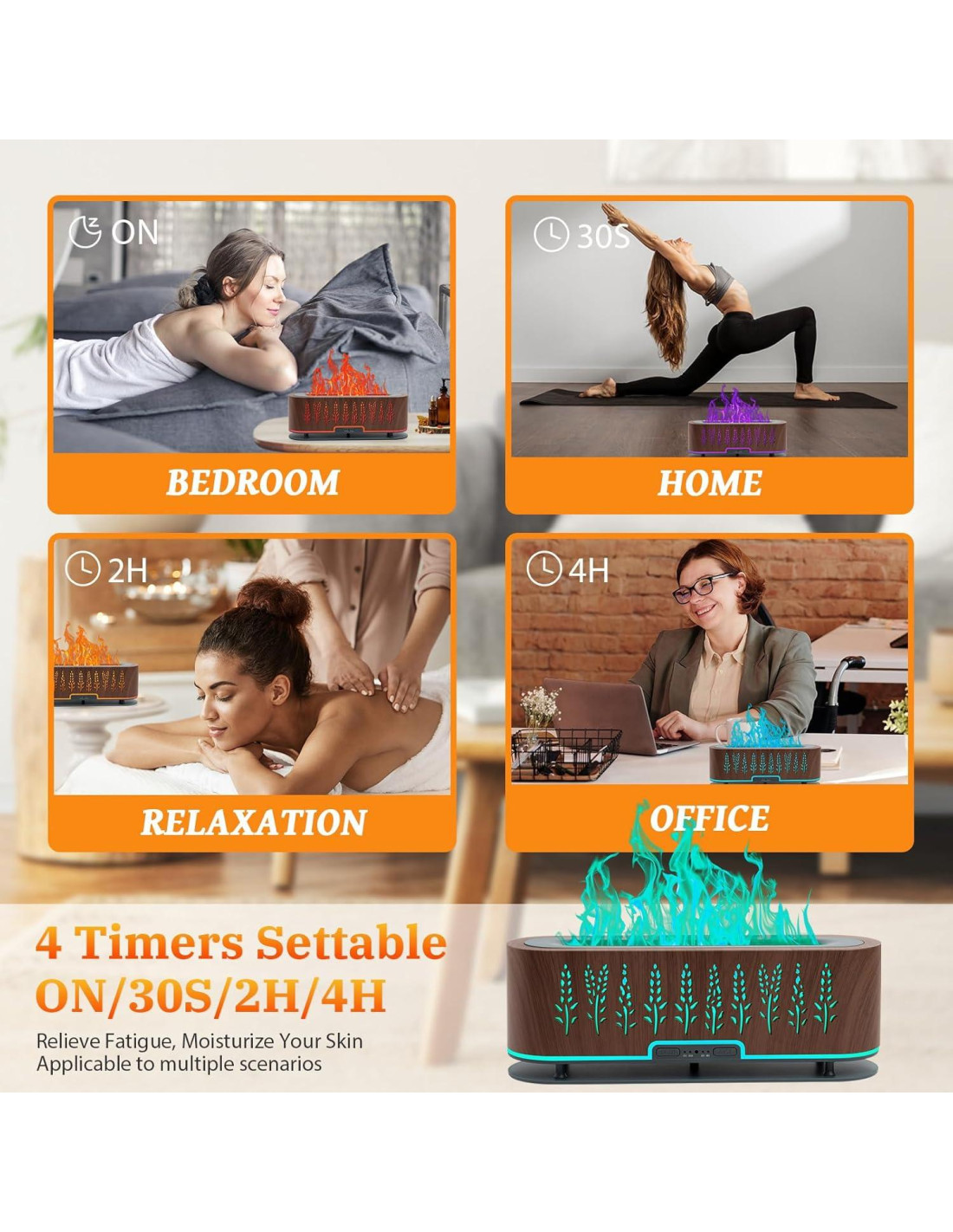 - [4-EN-1 Difusor de Aire] Nuestro difusor de aceite de llama puede usarse como un difusor de aromaterapia, neblina, luz de ambiente romántica y luz nocturna. Agrega de 3 a 5 gotas de tu aceite esencial favorito durante su uso para aliviar la fatiga, humectar tu piel y crear un ambiente cómodo perfecto.