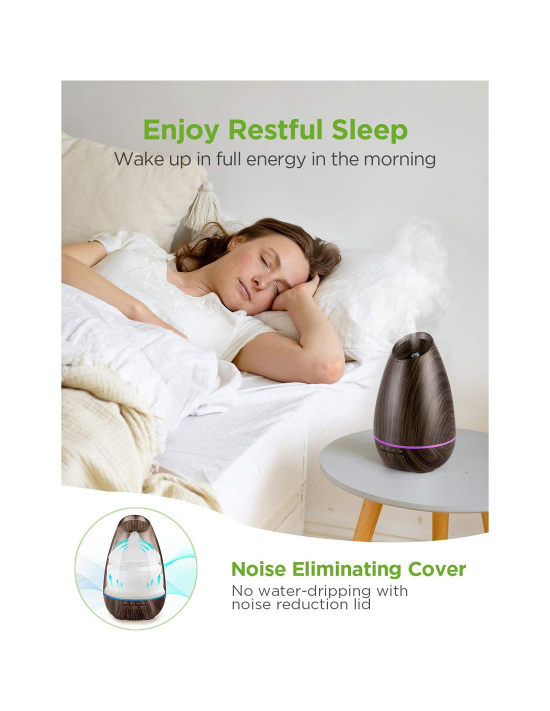 - Capacidad Grande de 400ml y Niebla Potente en 2 Modos: El tanque de agua de 400ml puede soportar que el difusor de aceite esencial funcione de 5 a 6 horas en modo fuerte y de 8 a 10 horas en modo débil, asegurando humidificación toda la noche.