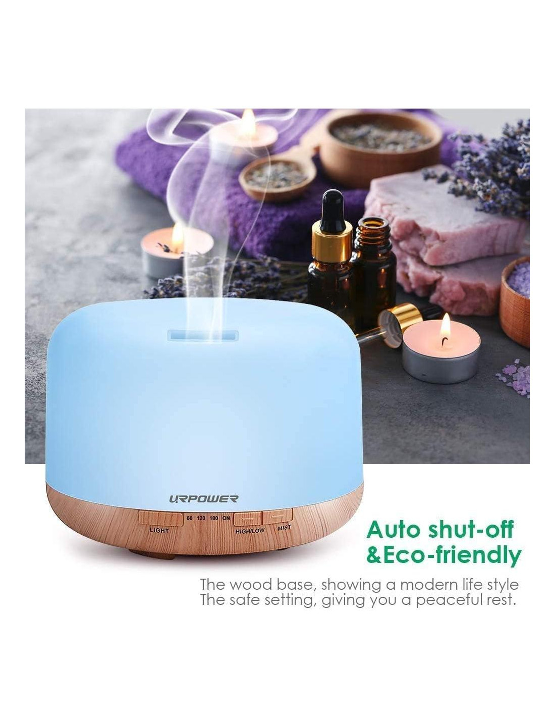 - Diseño Moderno y Elegante - Este difusor de aceite esencial está hecho de plástico con una base de aspecto de madera, se mezcla naturalmente con la mayoría de la decoración del hogar. Las 7 luces LED crean una atmósfera relajante en la habitación y hacen que tu vida sea más colorida.