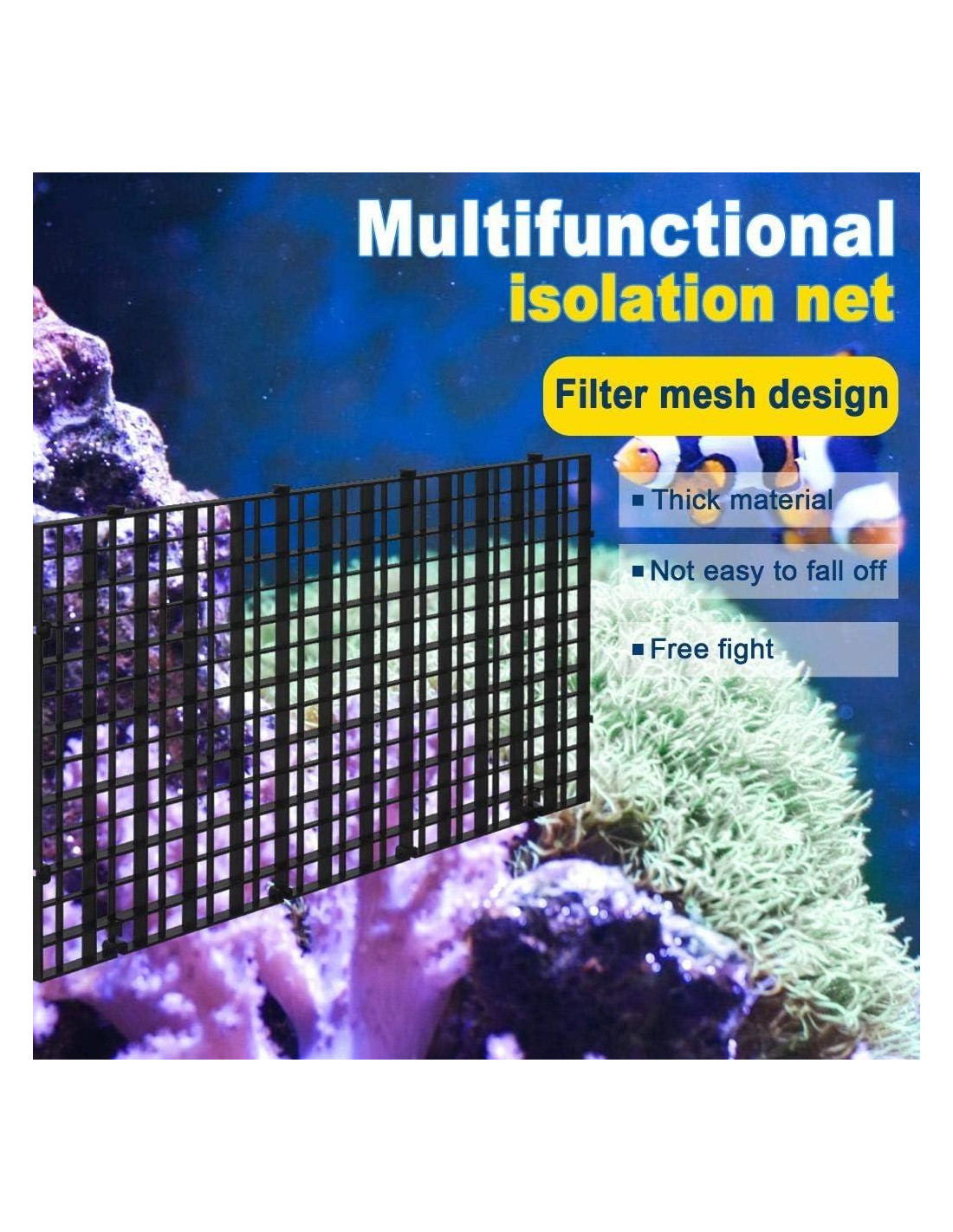 - DIVISORES VERSÁTILES: El divisor de rejilla puede separar eficazmente a los peces y evitar que se muerdan entre sí. Separaciones de diferentes peces para cría. Aumentando la tasa de supervivencia de los alevines, aislando peces enfermos y peces agresivos.