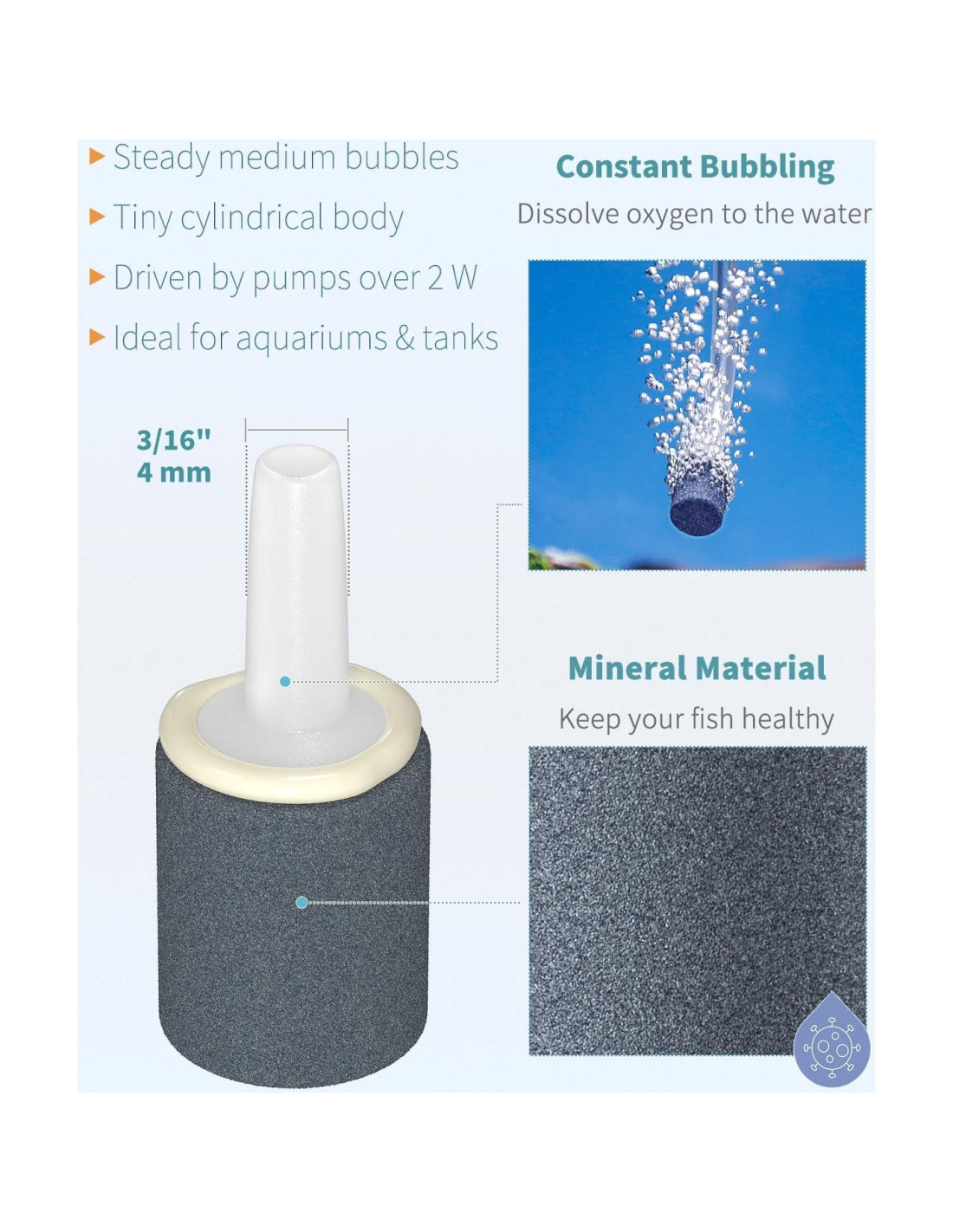 - Pequeño pero Duradero: Cada cilindro mide 1.3 cm de diámetro x 1.5 cm de altura y pesa 4 g. Pequeño pero bien construido para burbujas continuas. Ideal para tanques de peces pequeños o acuarios.