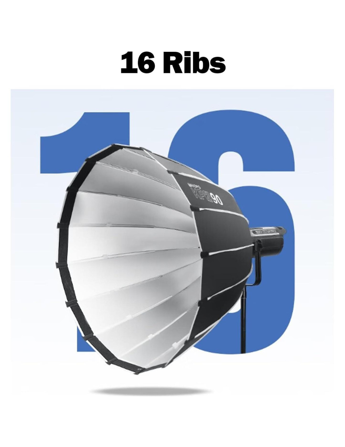 - Liberación Rápida y Plegado Rápido: 16 varillas dan a este softbox una durabilidad incomparable y una forma parabólica impecable. El diseño de liberación rápida permite que configures el softbox en varios segundos sin ninguna herramienta
