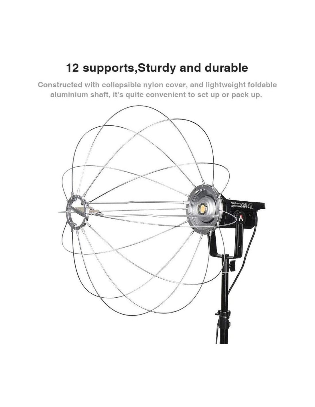 - Luz Suave y Omnidireccional: Ilumina toda la habitación. Al utilizar un diseño esférico de 66cm, la Linterna dispersa la luz de tu LED o Estroboscopio de Estudio en todas las direcciones con un ángulo de haz de 270. El softbox Aputure es ideal para usar en estudios.