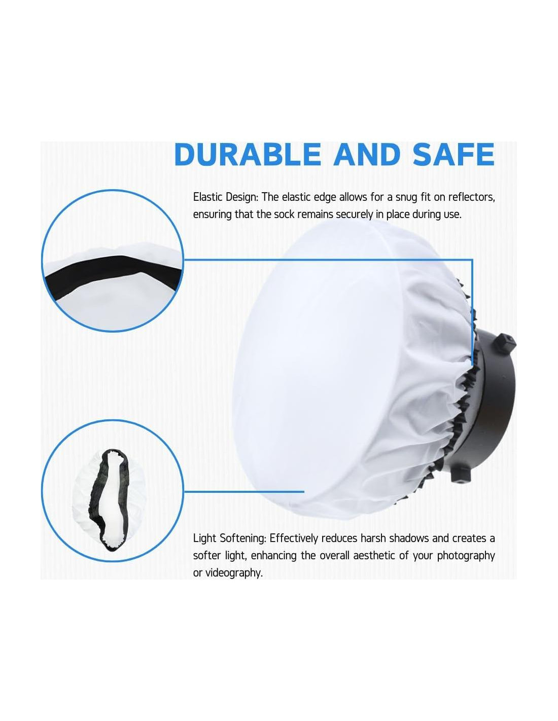 CARACTERÍSTICAS - Gran Elasticidad - Ideal para reflectores de 7" a 11" (18cm a 28cm) de diámetro (Se ajusta bien a reflector estándar y reflector sparkler de 27cm) - Material: Nylon PAQUETE INCLUIDO - 1 x Calcetín Difusor OBSERVACIONES: Los reflectores se muestran solo para ilustración.