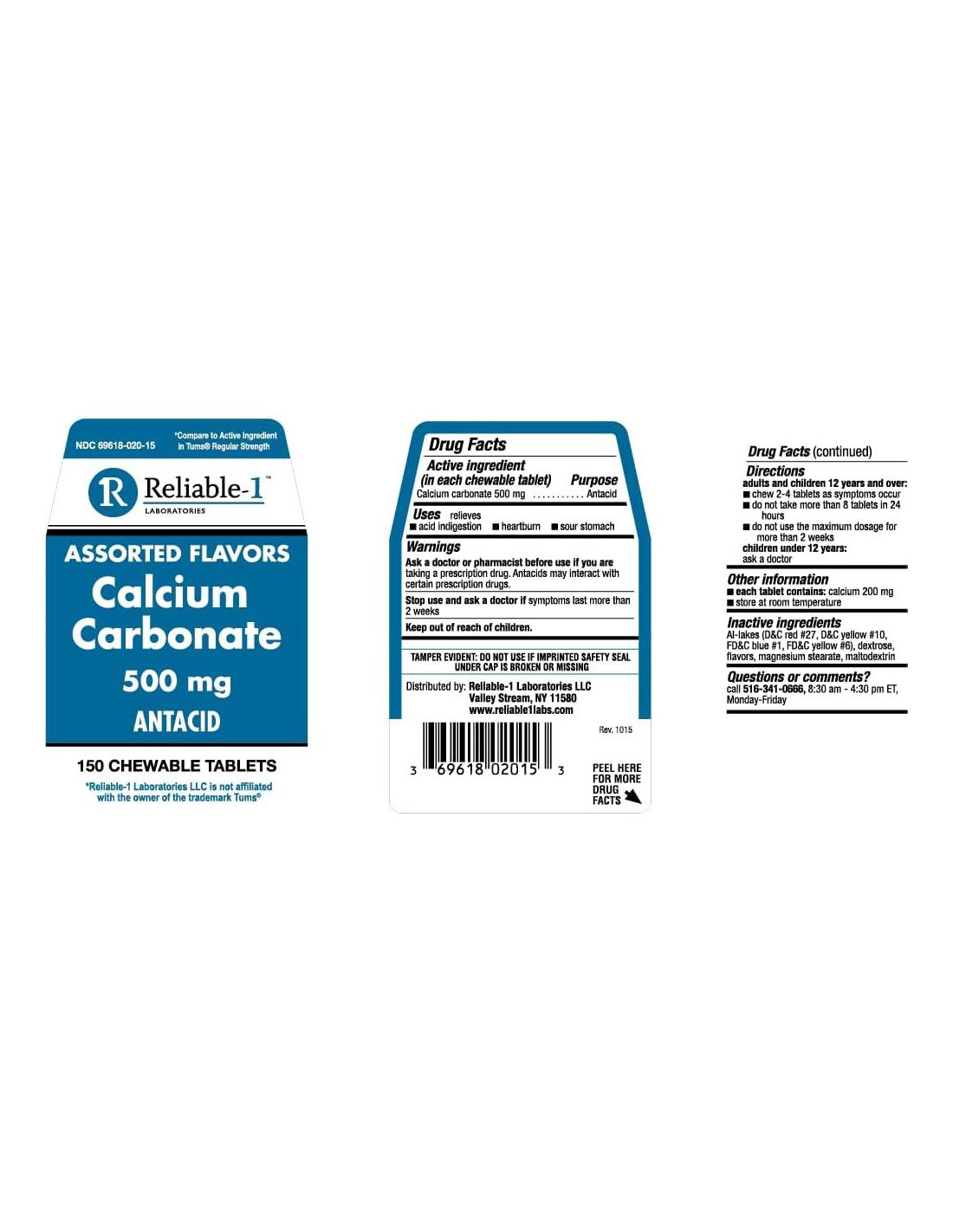 Las tabletas de Carbonato de Calcio Reliable 1 de 500 mg proporcionan alivio de acción rápida de la indigestión ácida, la acidez estomacal y el estómago agrio, mientras que también sirven como un suplemento de calcio. Perfecto para aquellos que buscan alivio rápido de la incomodidad digestiva ocasional.