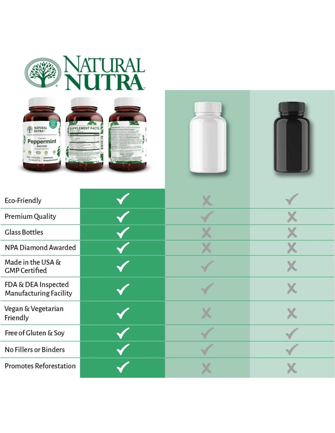 - Enzimas digestivas para la indigestión completa: las enzimas digestivas apoyan la capacidad del cuerpo para recibir nutrientes de los alimentos. El cuerpo utiliza enzimas para la digestión de proteínas, grasas y carbohidratos. Nuestras enzimas digestivas de menta ayudan a descomponer estos micronutrientes para que puedan ser absorbidos adecuadamente por los intestinos y utilizados por el cuerpo. Nuestros suplementos de enzimas también ayudan a aliviar gases, indigestión y otras molestias digestivas.