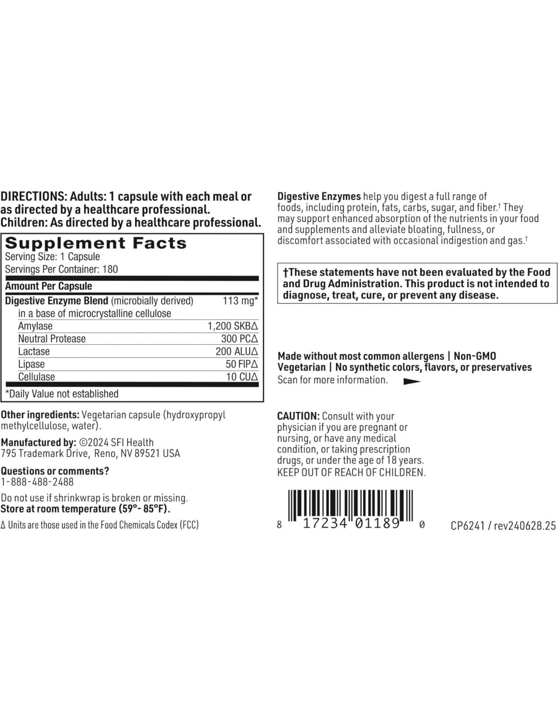 Klaire Labs Enzimas Digestivas - Mezcla Potente de Enzimas Basadas en Microbios: Amilasa, Proteasa, Lactasa, Lipasa y Celulasa para Gases y Distensión Abdominal (180 Cápsulas)
