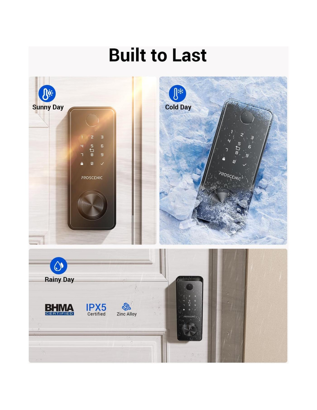 - Características especiales: Aleación de Zinc, Resistente a la Intemperie IPX5, Desbloqueo por Huella Dactilar, Desbloqueo por Código de Teclado, 2 Llaves y Fobs, Desbloqueo por App, Desbloqueo por Voz, Contraseña Anti-Ojeo, Auto-Cierre, Notificación en Tiempo Real, Código de Un Solo Uso, Gestión de Acceso, Batería incluida para Uso de Un Año