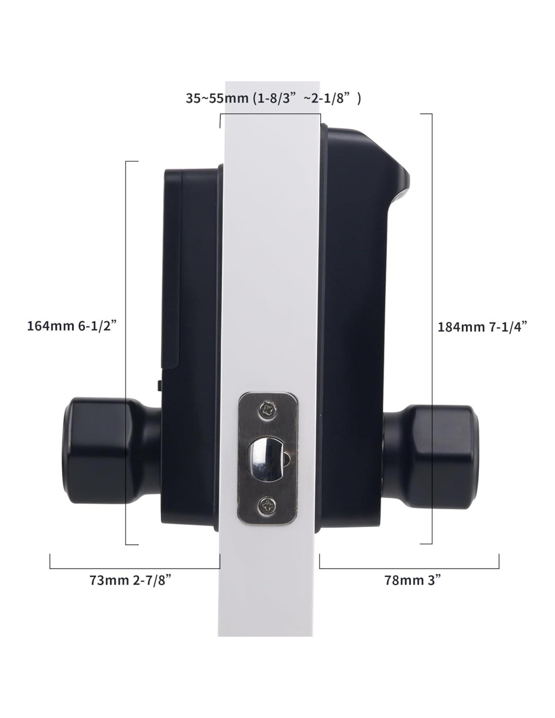 - [Rango de grosor de puerta] 1 3/8 pulgadas a 2 3/16 pulgadas (35mm-55mm) de grosor. Adecuada para la mayoría de los grosores de puerta. Esta cerradura digital es adecuada para puertas tanto de mano izquierda como de mano derecha.