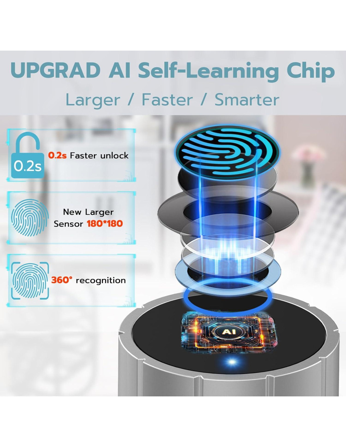 - Cerradura de Huellas Dactilares Tecnología avanzada de cerradura de huellas dactilares con mejor respuesta y sensibilidad. Desbloqueo rápido en 0.1 segundos, gran capacidad de 20 huellas dactilares, fácil de usar. La cerradura de huellas dactilares soporta 20 huellas dactilares. Usando tu huella dactilar para desbloquear, aléjate de llaves, Bluetooth, etc.