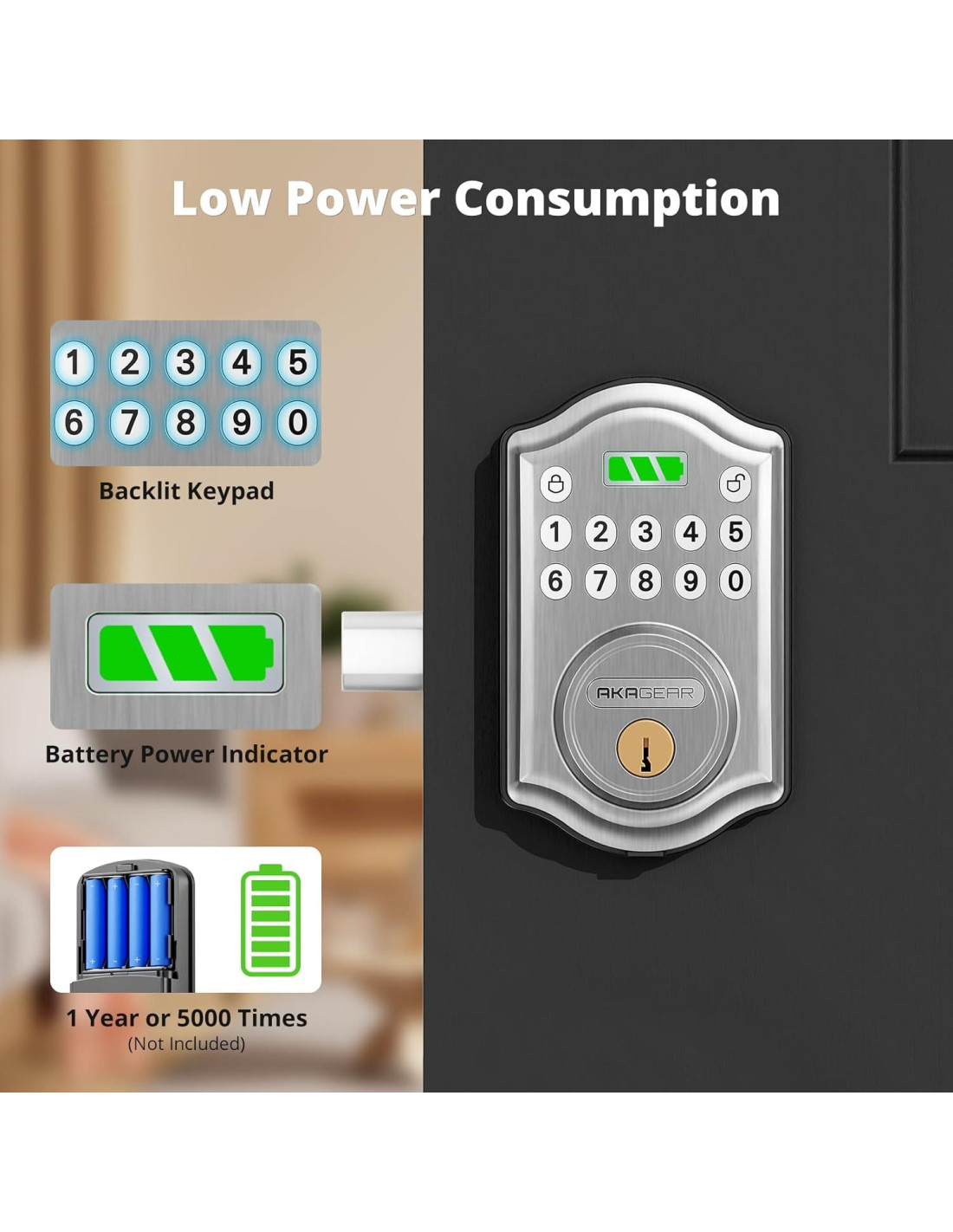 Una vez que se intenta una contraseña inválida 5 veces, el teclado se bloqueará durante 60 segundos. Puedes ver el teclado claramente incluso en entornos de poca luz. Si la cerradura se queda sin energía, puedes usar un banco de energía como respaldo. Esta cerradura de puerta es duradera y robusta, operando dentro de un rango de temperatura de -31.67 C a 70 C.