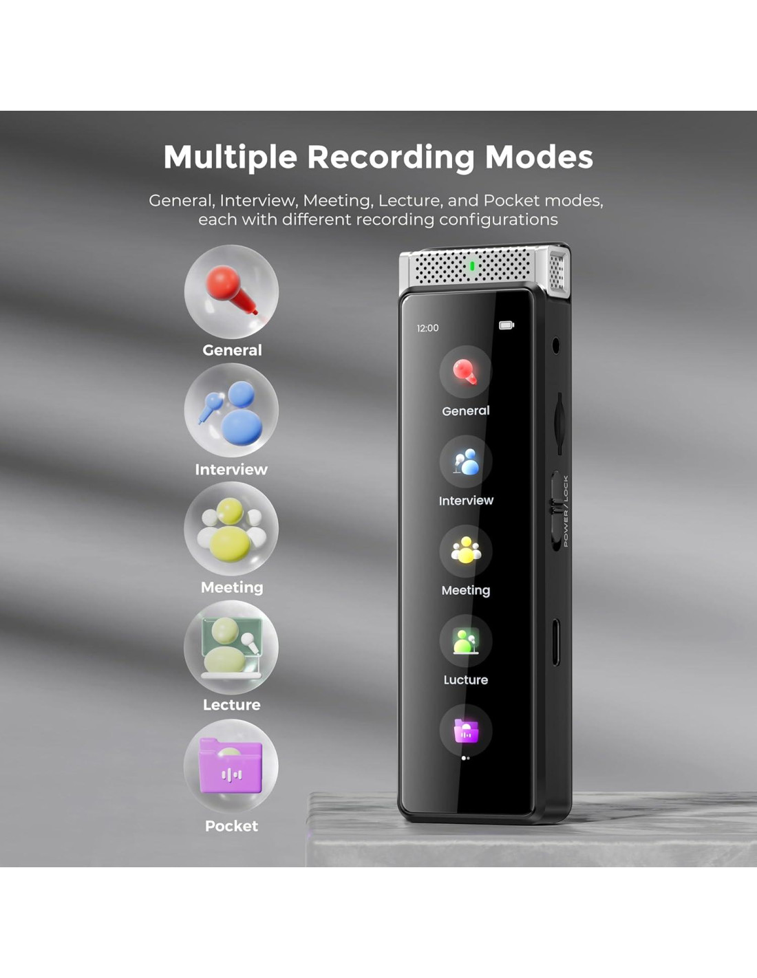 - Transcripción de Voz a Texto Offline - La grabadora de audio R1 cuenta con una función de transcripción de voz a texto inteligente offline incorporada, que te permite obtener transcripciones instantáneas mientras grabas. Además, puedes exportar documentos STT para maximizar la eficiencia laboral
