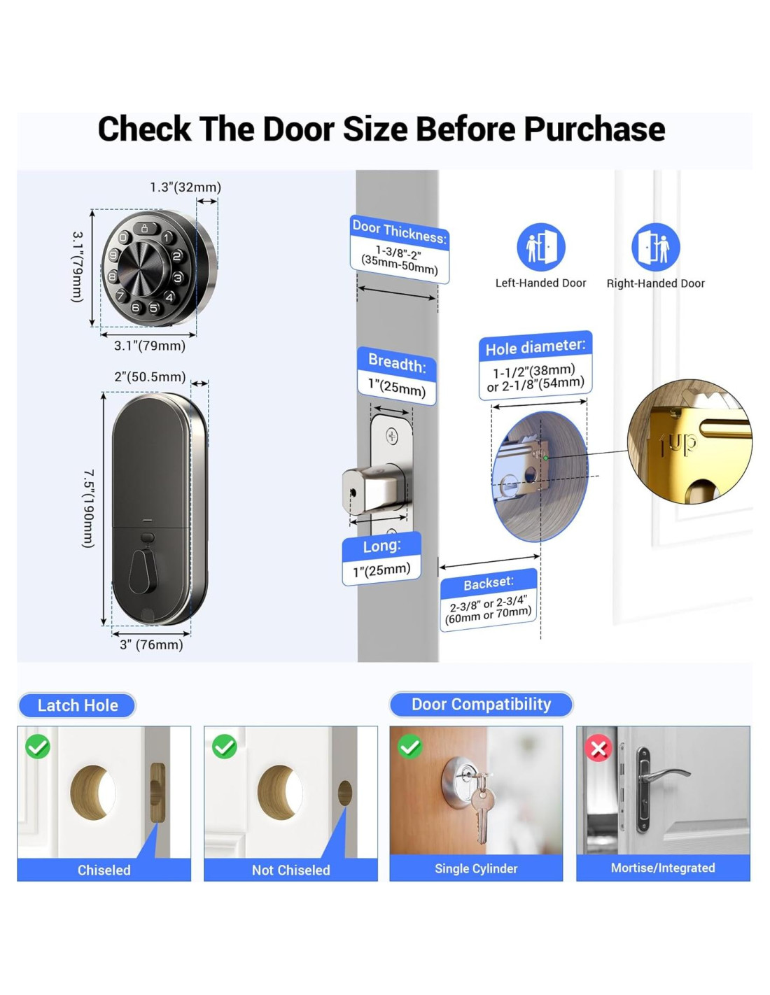 - Usos recomendados para el producto: Puerta Principal, Puerta Trasera, Puerta Lateral, Puerta de Dormitorio, Interior, Habitación de Alquiler a Corto Plazo, Apartamento, Puerta de Garaje, Puerta de Lavandería, Exterior