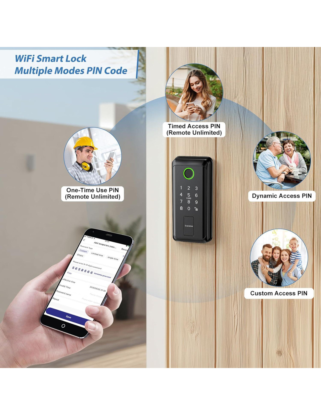 - Seguridad Sin Llave Avanzada 6 en 1: Mejora tu hogar con la tecnología de vanguardia que ofrece la cerradura inteligente Evanshow con 6 métodos de entrada seguros: incluyendo reconocimiento de huellas dactilares, control de aplicación móvil WiFi 2.4G, códigos de acceso personalizados, llaveros, llaves mecánicas e incluso desbloqueo por voz de Alexa y control remoto. Elimina el estrés de perder llaves y disfruta de un acceso sin problemas para cada estilo de vida.